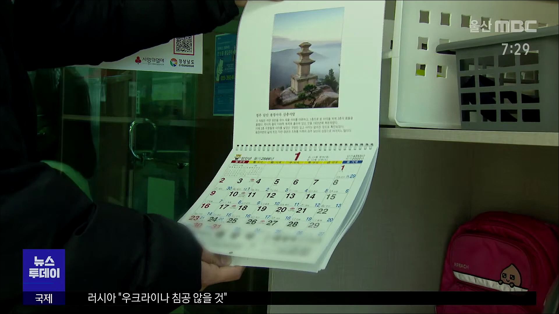 ◀앵커▶ 요즘 2022년 새해 달력 찾아보기 힘들다는 어르신들이 꽤 많습니다. 스마트폰과 불경기 등 요인으로 과거에 비해 제작 자체가 줄기도 했지만, 선거가 얼마 남지 않은 상황이라 달력 나눠줬다가 자칫 선거법 위반이 될 수도 있다고 합니다. 정세민기자가 전해드립니다. ◀리포트▶ [신복자 씨 ] " 경기가 안 좋아서 그...