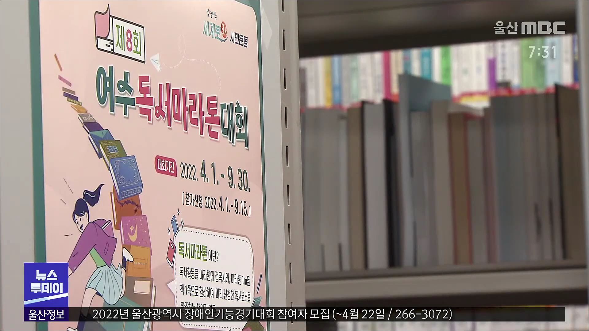 ◀ANC▶ 전남의 한 지자체에서 책 읽기와 마라톤을 접목시켜 독서 목표를 달성하는 독서마라톤 프로그램을 운영하고 있습니다. 예산 대비 행정 효율이 뛰어난 우수 시책으로, 큰 호응을 얻고 있다고 합니다. 여수, 최우식 기자. ◀VCR▶ 여수에서는 올해 8년째 독서마라톤대회가 진행됩니다. 이번 달부터 9월까지, 6개월 ...