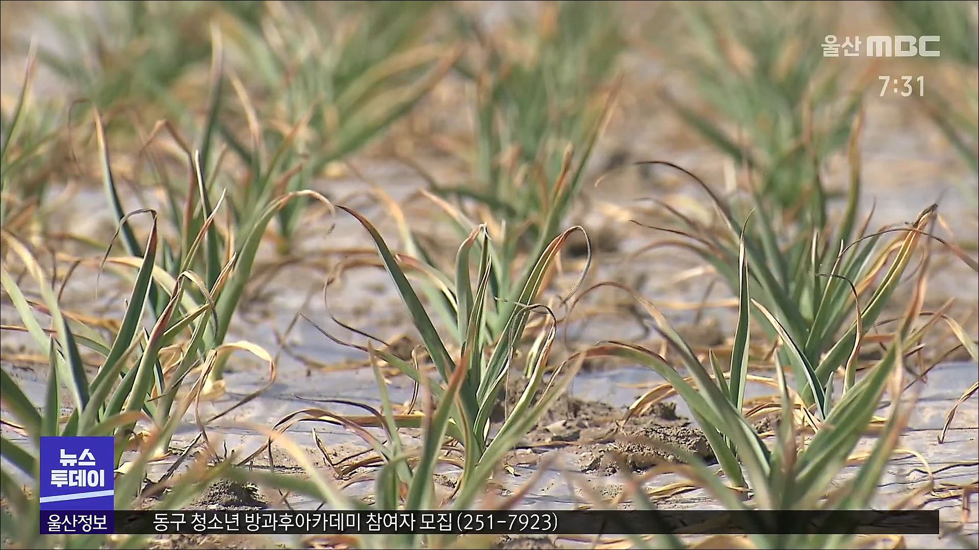 ◀ANC▶ 건조한 날씨가 계속되면서 마늘과 양파와 같은 월동 작물을 재배하는 농가는 걱정이 태산같습니다. 경북에서 마늘 최대 주산지인 영천에는 지난해 12월부터 지금까지 비다운 비는 단 한차례도 내리지 않았습니다. 마늘 농사를 한 한 농민은 45년 동안 이런 겨울은 처음이라고 말할 정도라고 합니다. 한태연 기자...