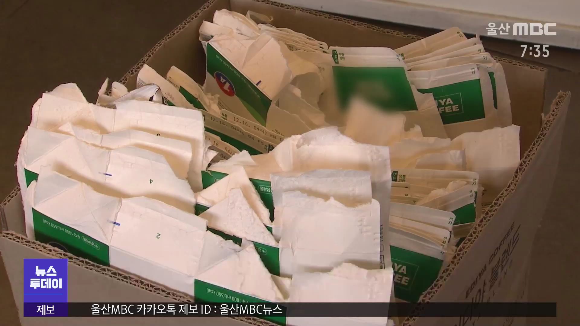 [앵커] 집단 급식소와 카페 등에서 다량으로 배출되는 우유팩이 관리 사각지대에 놓여 있습니다. 우유팩은 잘 모으기만 하면 손쉽게 휴지로 재활용이 가능한데도, 지자체가 우유팩 자원 순환에 손을 놓고 있다는 지적이 나옵니다. 장미쁨 기자가 보도합니다. [리포트]부재료로 우유가 많이 사용되는 카페에서는 매주 200개...