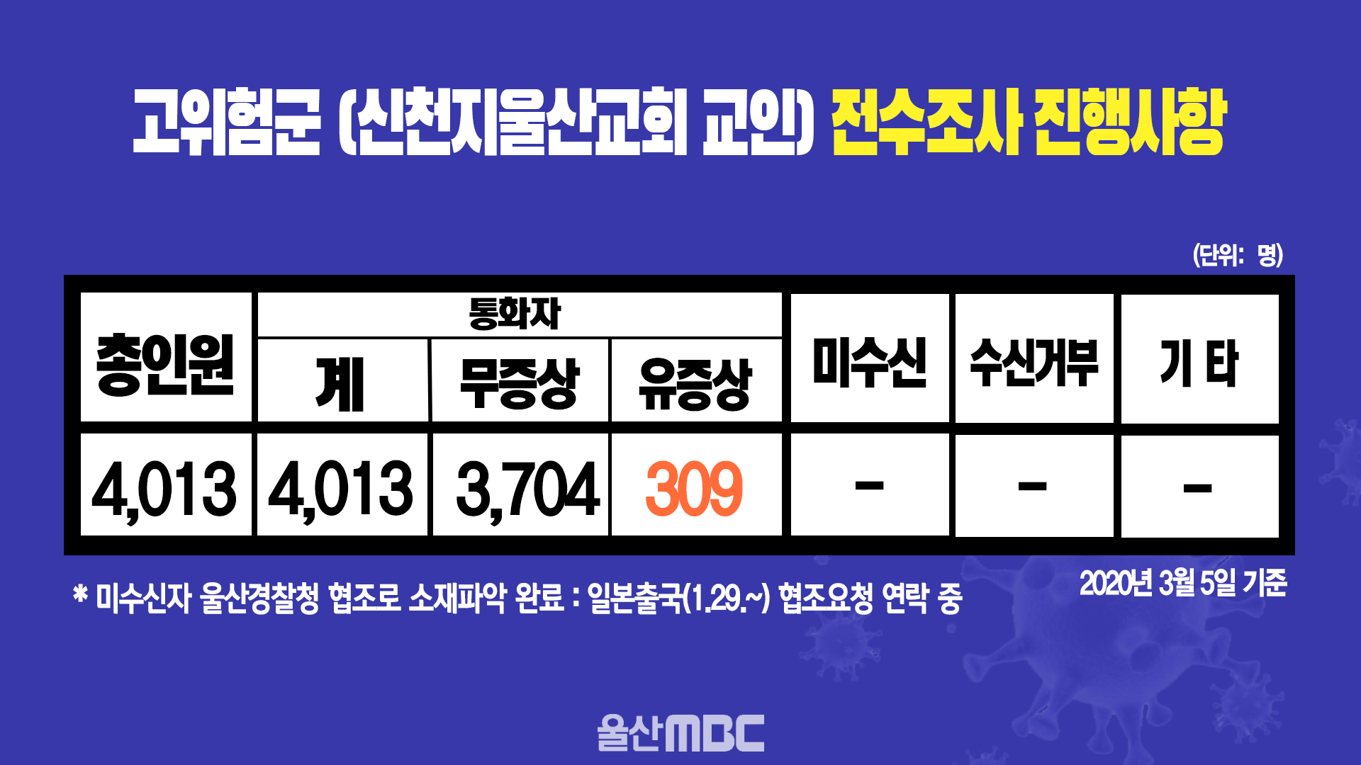 3. 울산 21번, 22번, 23번 신천지 교인인지 여부 : 3명 모두 고위험 명단에 없음