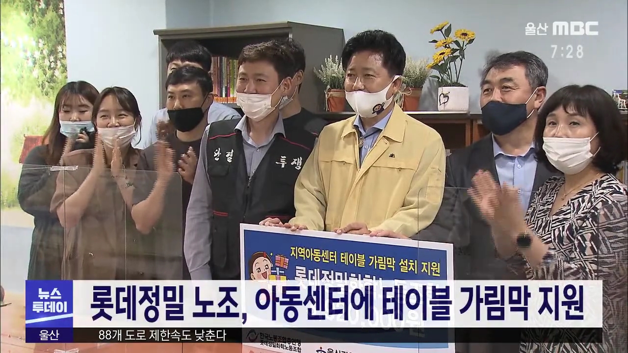 중구 지역아동센터에 써달라며 400만 원 상당의 테이블 가림막을 기부했습니다.