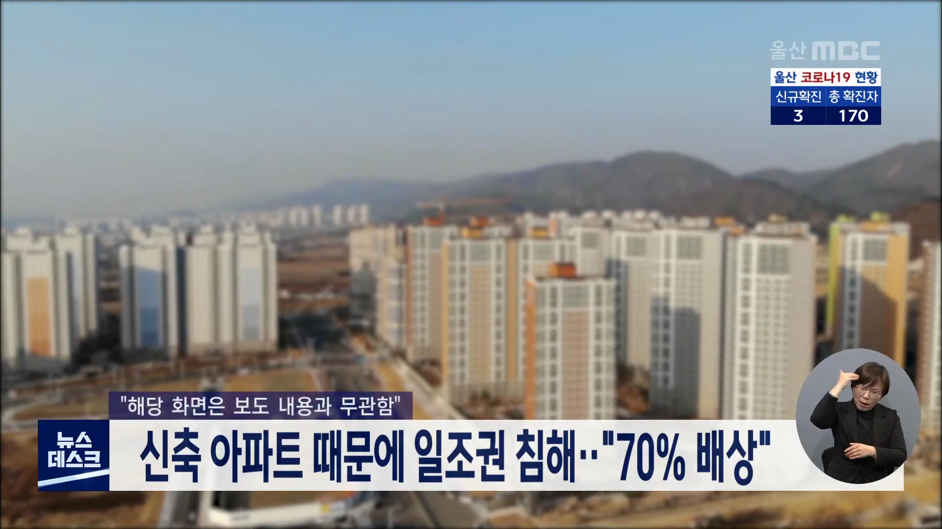 재판부는 기존 아파트의 일조량이 4시간 이하로