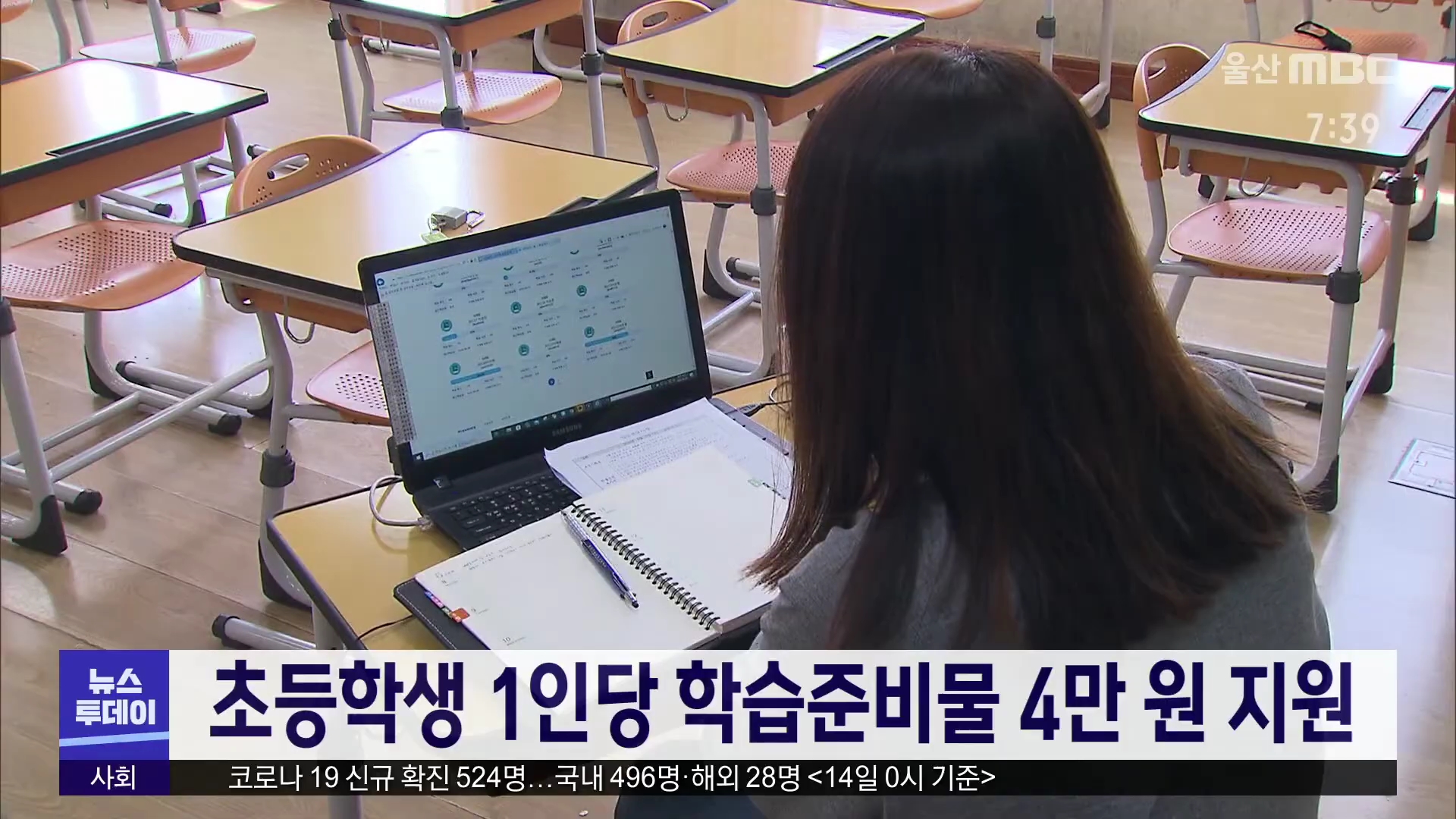 원격수업 맞춤형 학습준비물 꾸러미를 배부하고