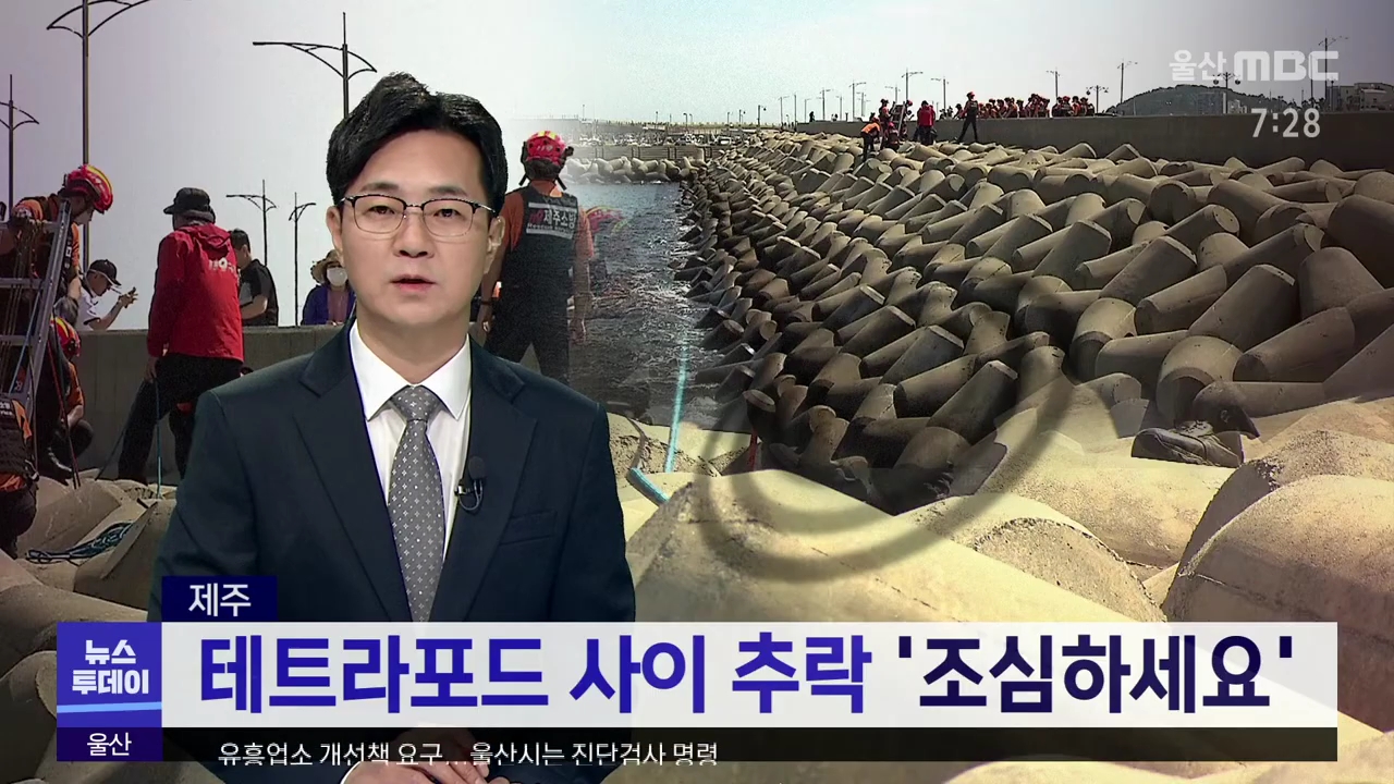 테트라포드 사이로 추락하는 사고가