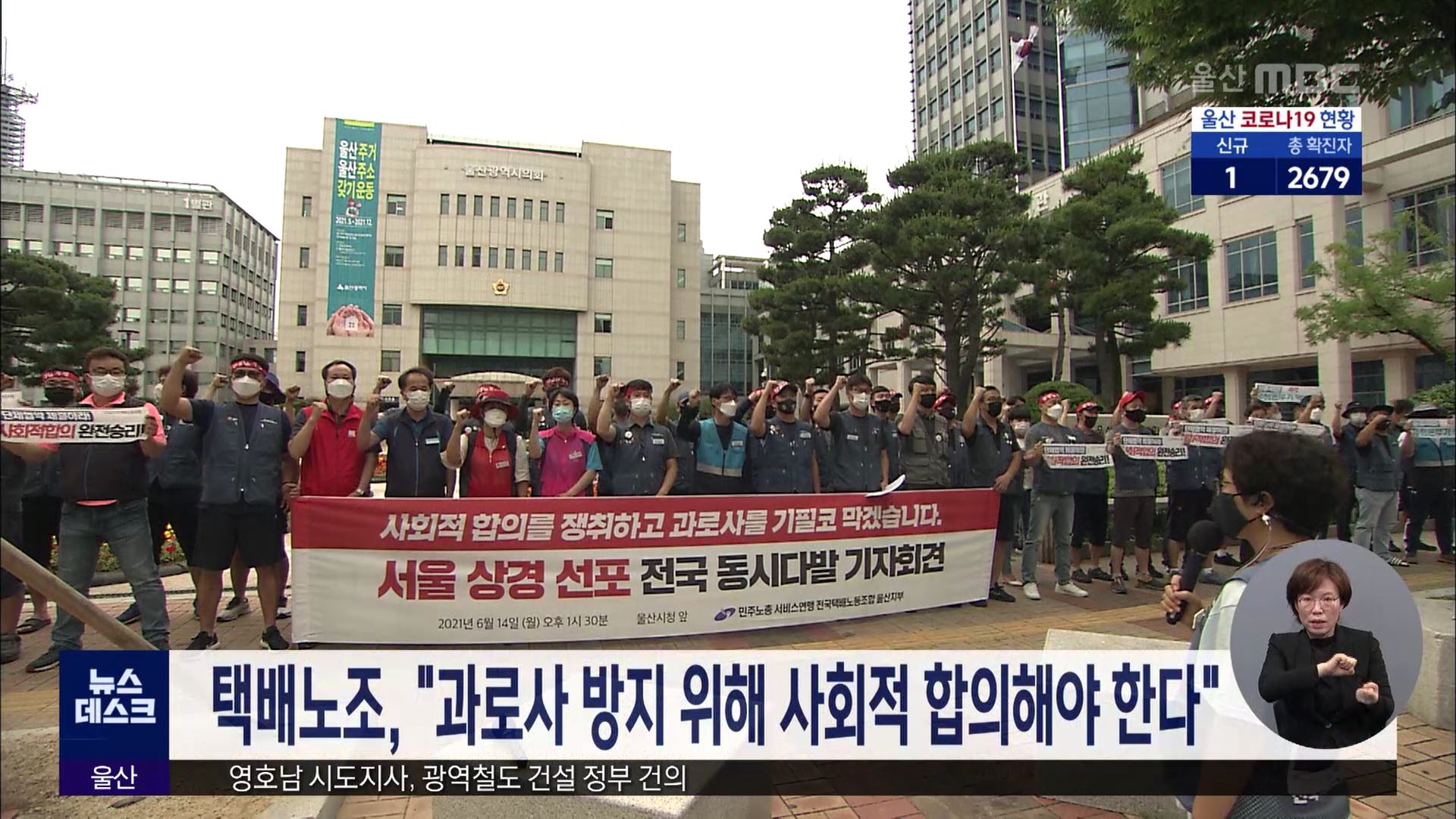 울산시청 앞에서 기자회견을 열고 택배 노동자의