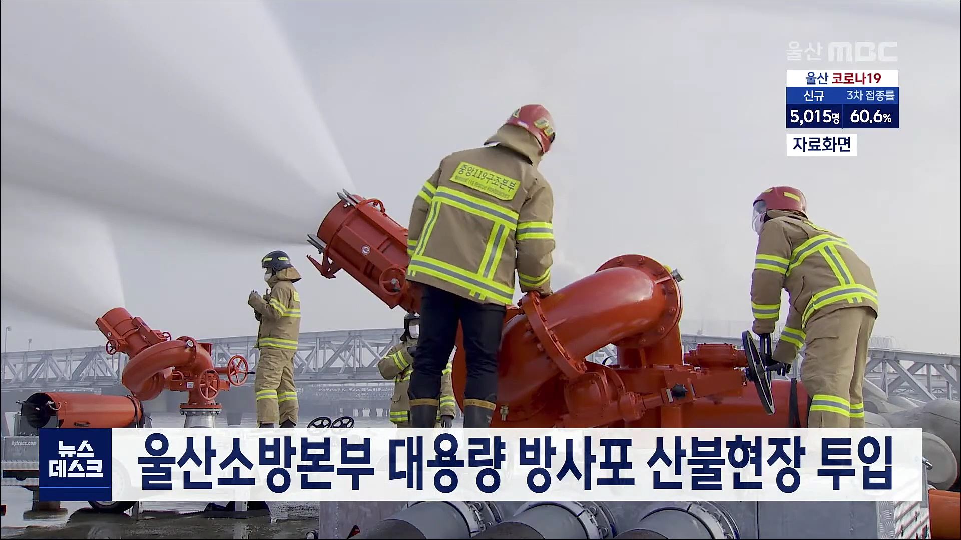 석유화학단지 화재 진압을 위해 울산에 배치된 대용량 방사포는