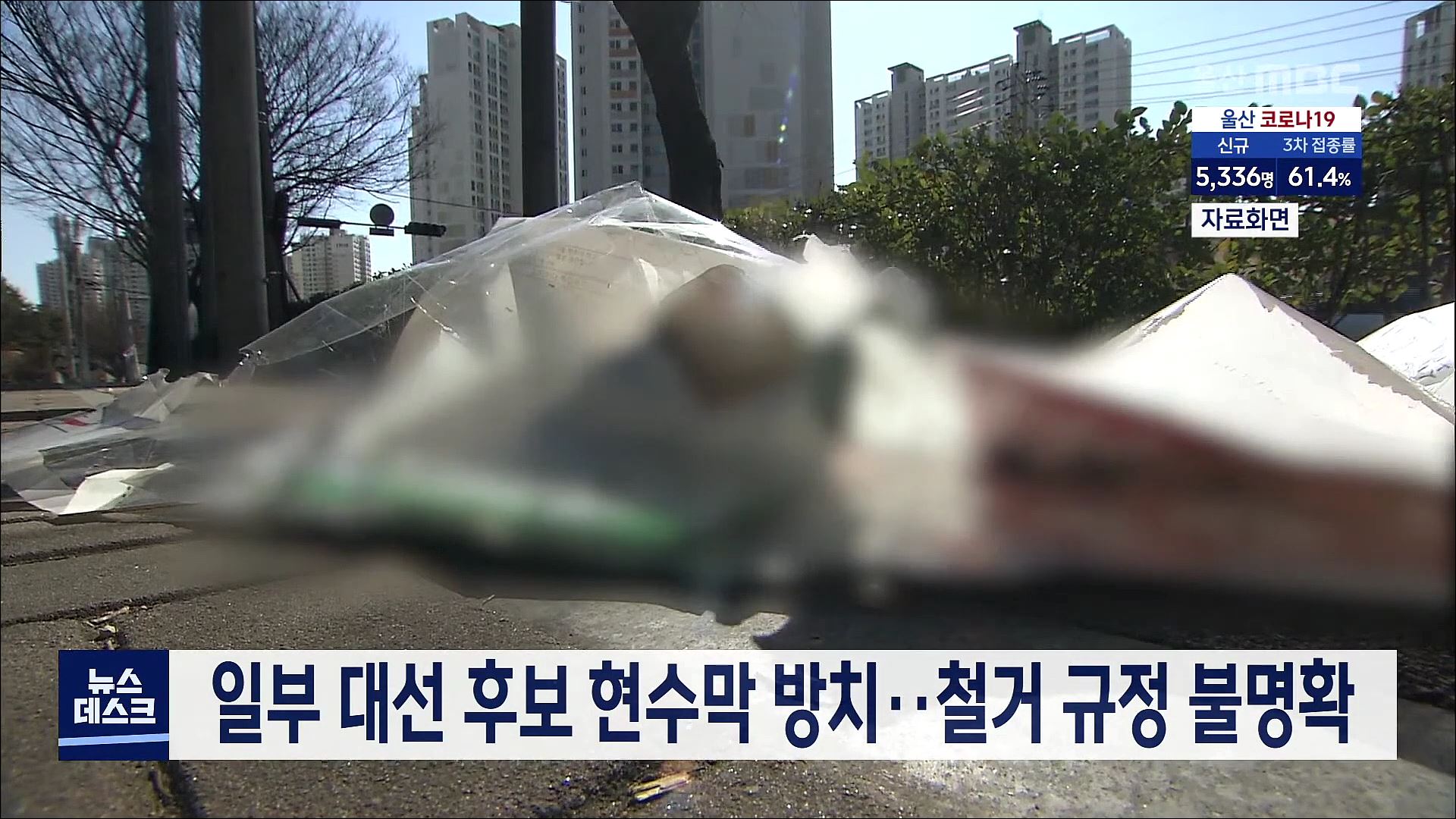 교차로와 가로수 등에 걸어놓은 현수막이 방치되고 있습니다.