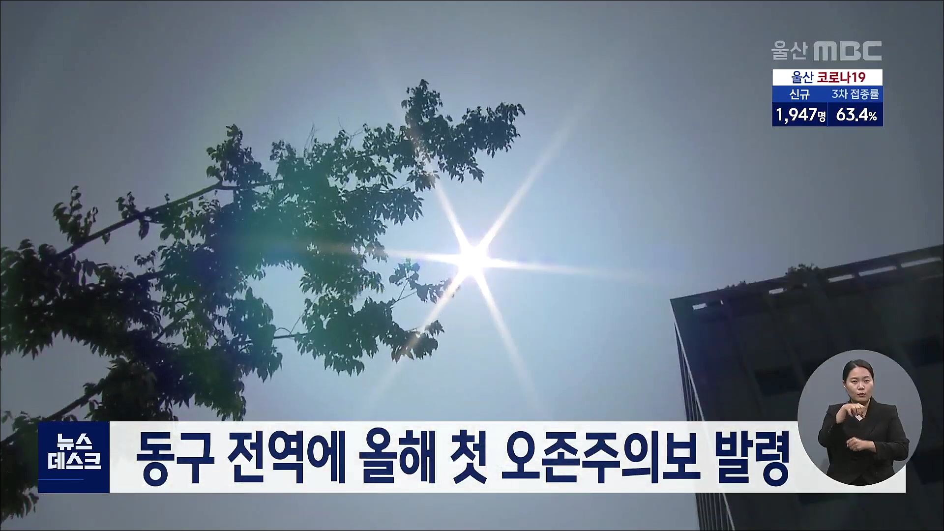 동구 지역의 시간평균 오존농도가 주의보 발령 기준인