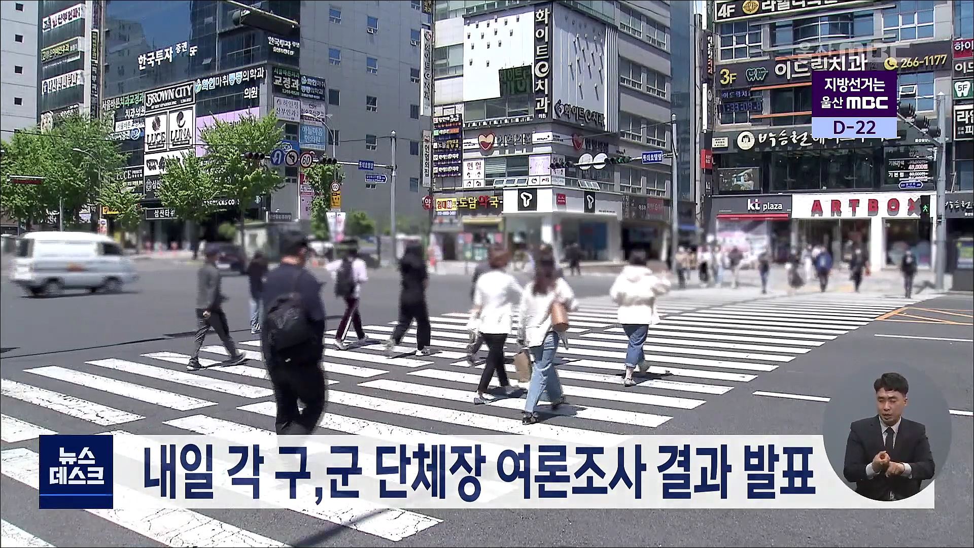내일은(5/11) 각 구˙군 기초단체장에 대한 지지도 여론 조사 결과를 발표합니다.