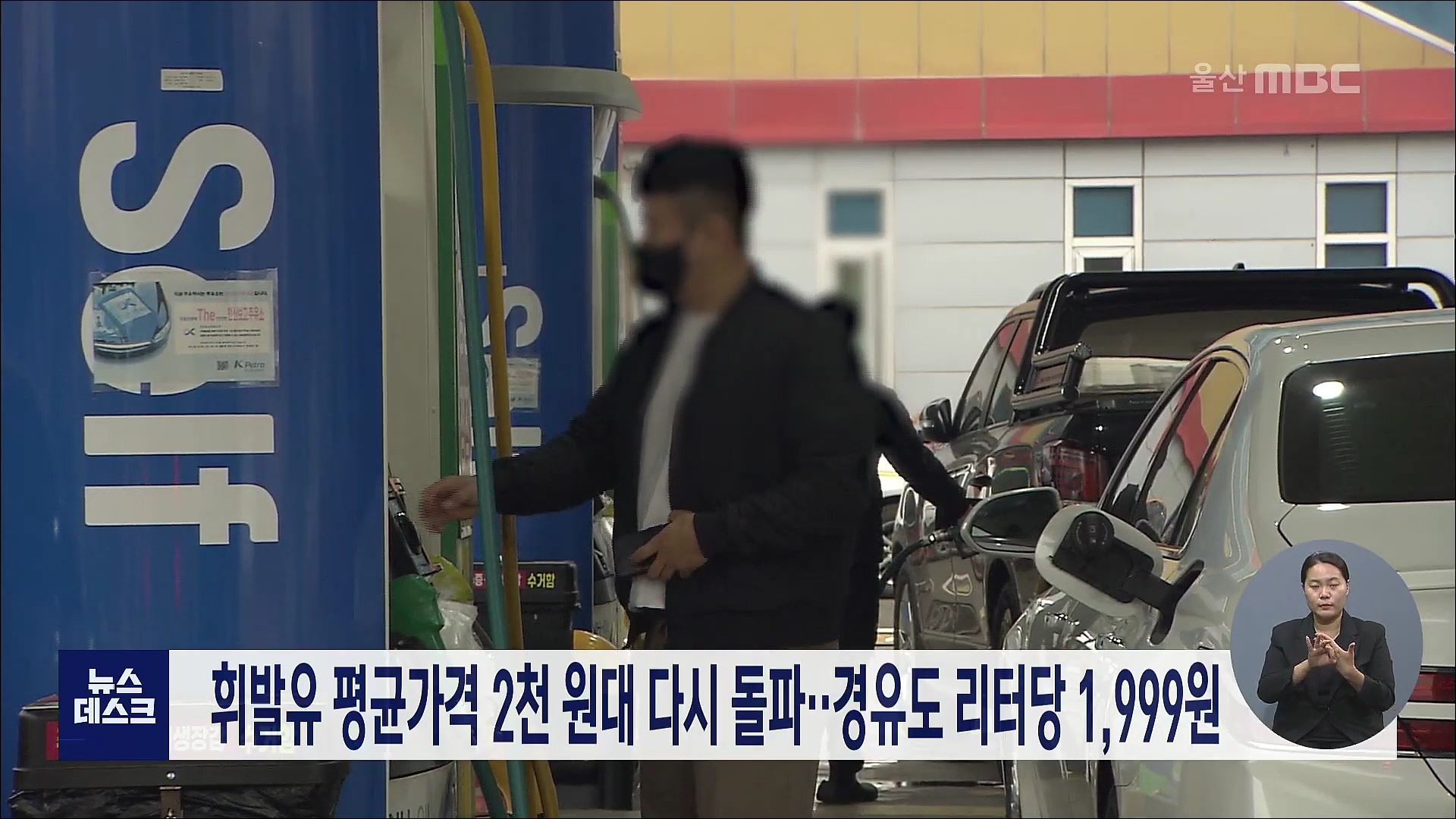 울산지역 주유소 휘발유 평균 판매 가격이 리터당 2천원을 다시 넘어섰습니다.