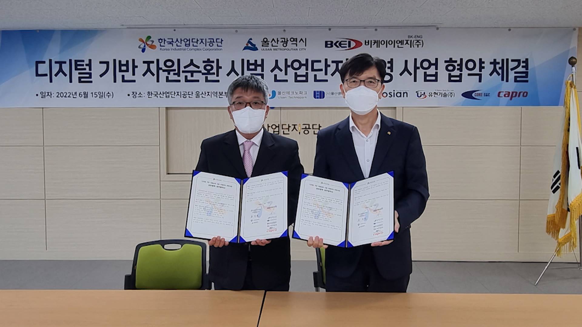 한국산업단지공단 울산미포 스마트그린산단 사업단은 오늘(6/15) 디지털 기반 자원순환 시범 산업단지 운영 사업 협약을 체결했습니다.