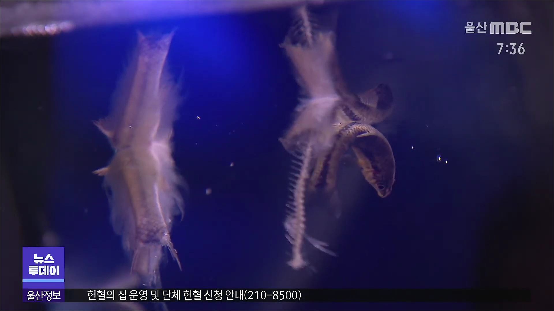 수족관를 살펴보니 죽은 고기들이 여기저기 눈에 띕니다.