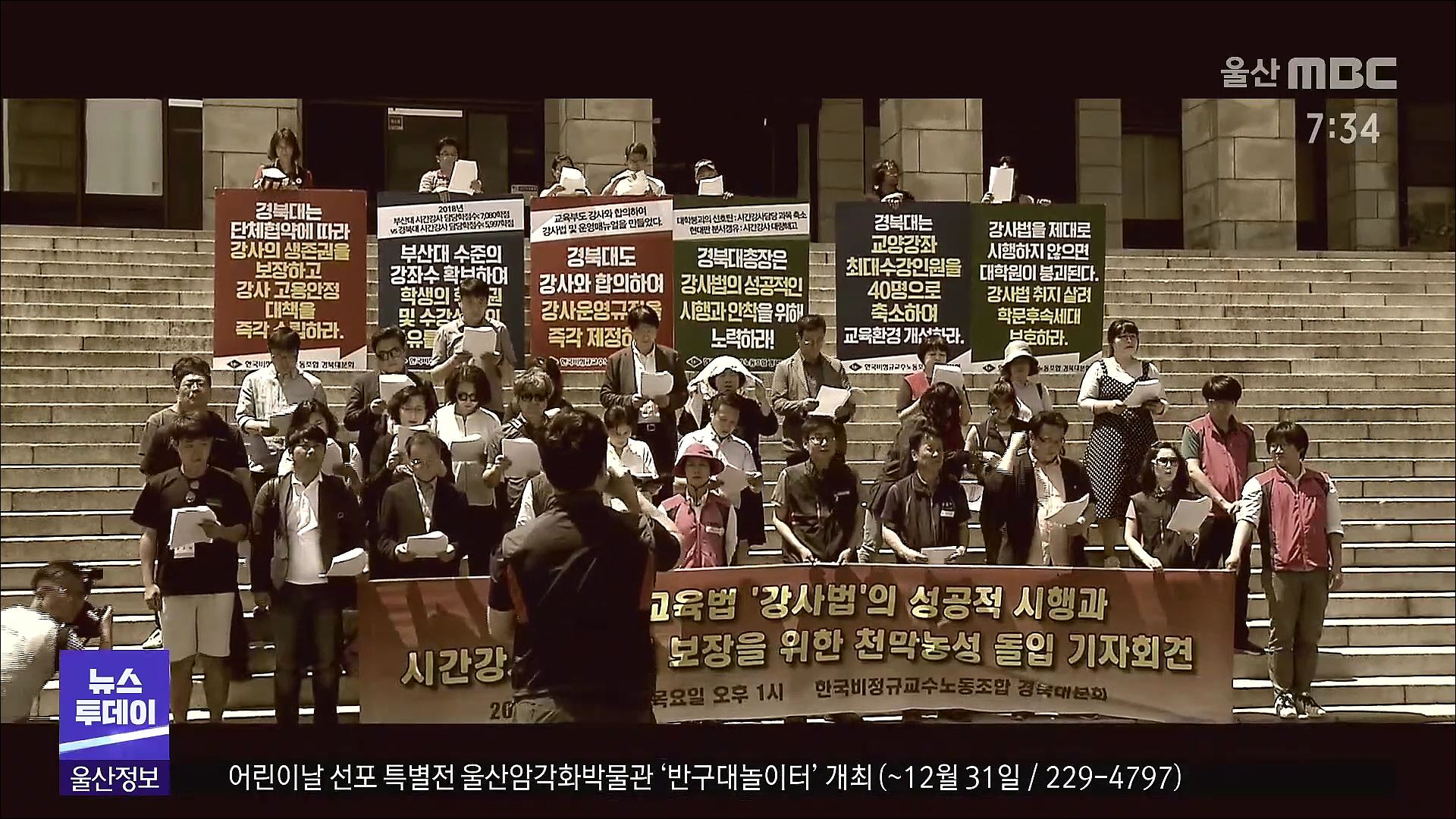 대학 본관 앞에선 곧 임용이 끝나는 강사들이 농성을 벌이고 있습니다.