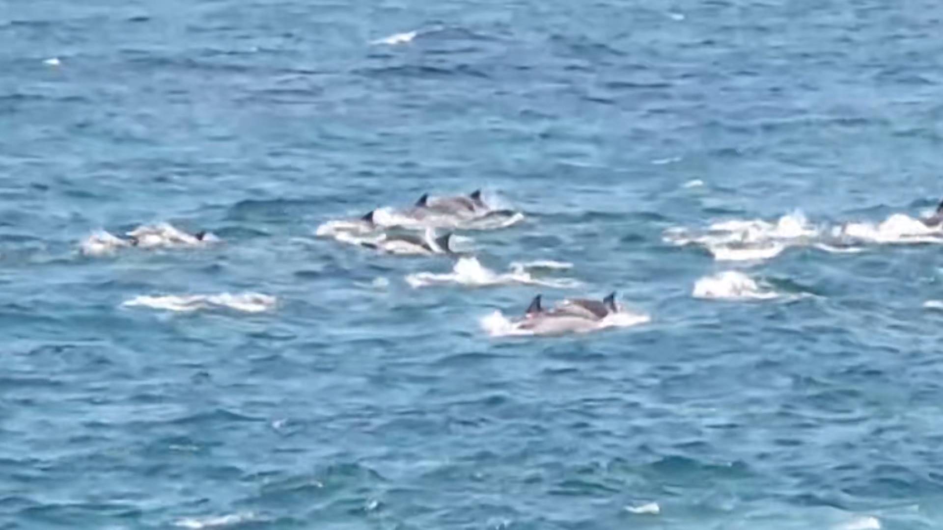 고래바다여행선은 오늘(8/5) 장생포 남동쪽 16.2km 해상 인근에서 참돌고래떼 50여 마리를 발견했다고 밝혔습니다.