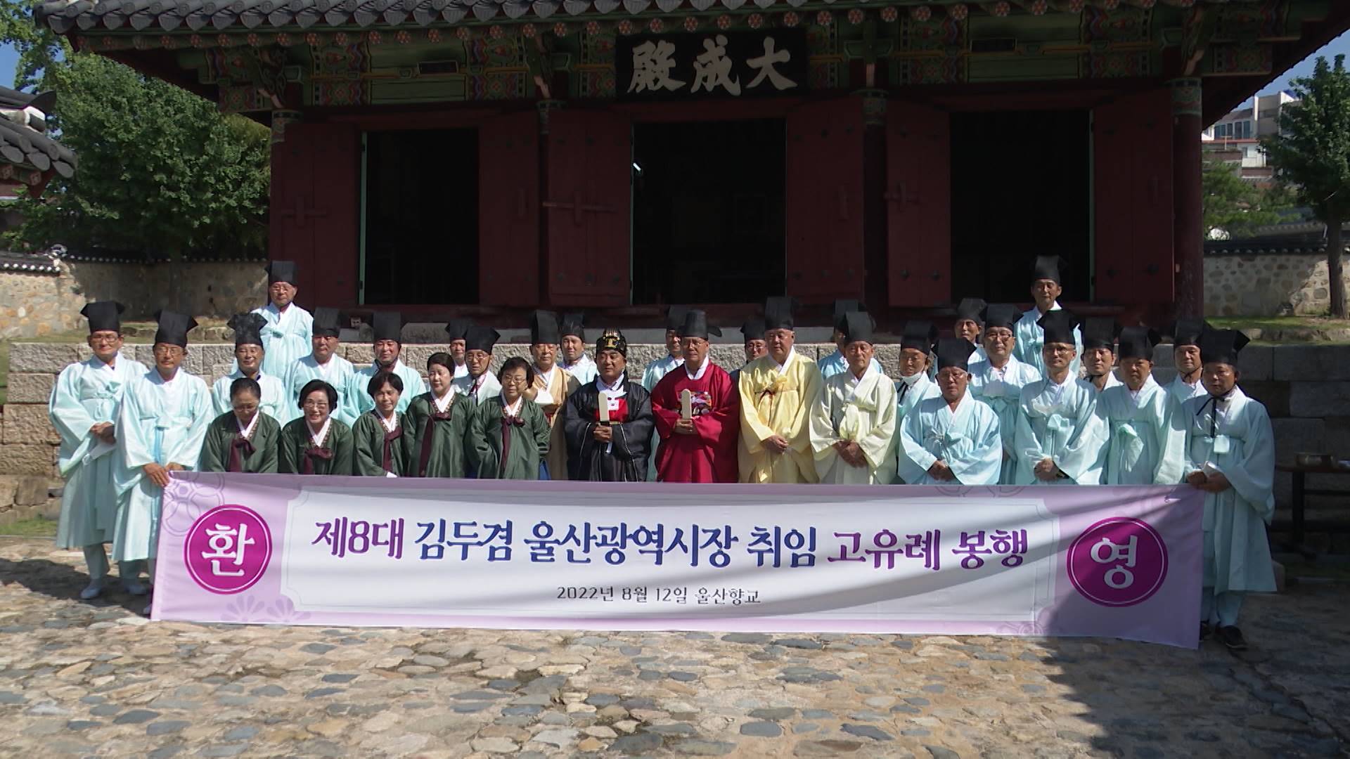 오늘(8/12) 오전 울산향교 대성전에서 전교와 장의, 유림 등 50여 명이 참석한 가운데 김두겸 울산시장의 취임 고유례가 봉행됐습니다.
