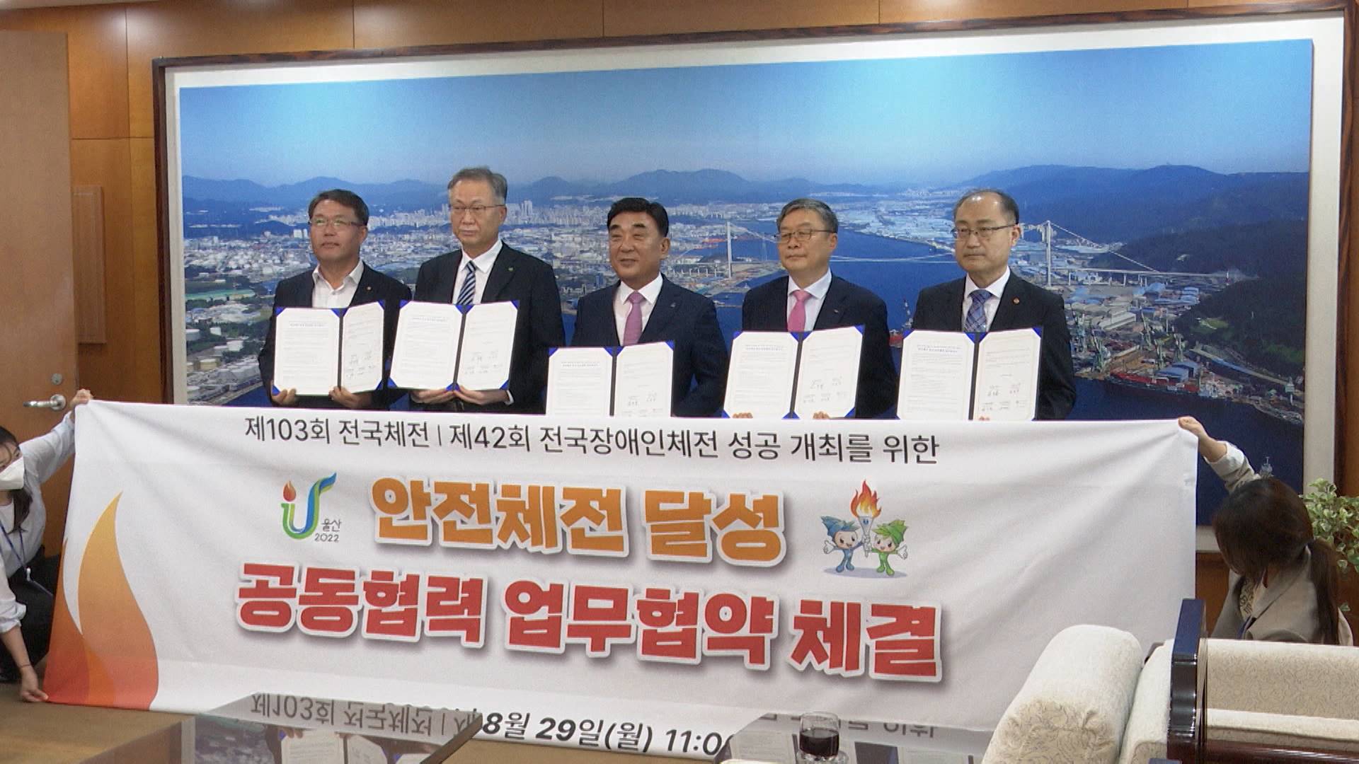 울산시가 제 103회 전국체육대회와 제 42회 전국장애인체육대회의 안전체전 달성을 위한 업무협약을 체결했습니다.