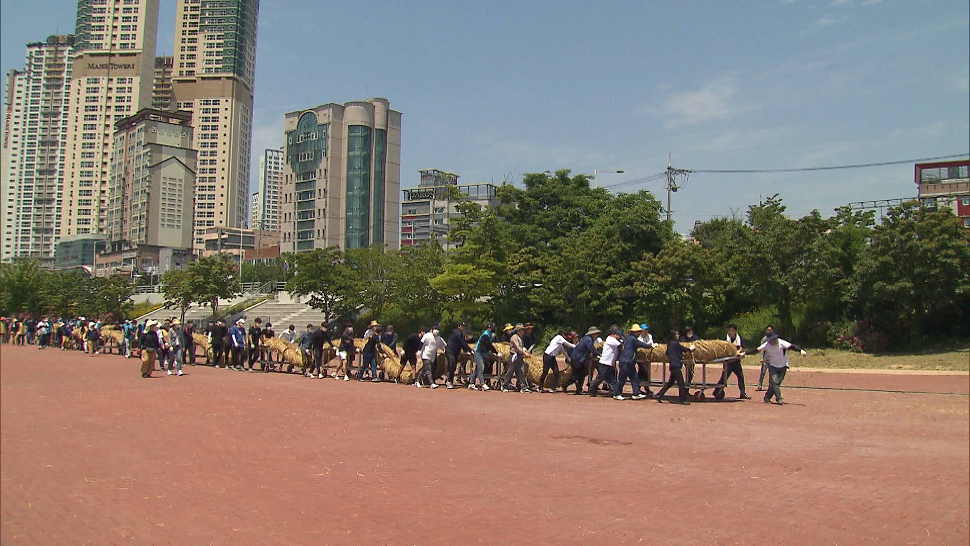 다음주 열리는 울산마두희축제를 앞두고 중구와 축제추진위가 대표 행사인 큰줄당기기를 위한 마두희 몸통 줄 제작을 시민들과 함께 진행했습니다.