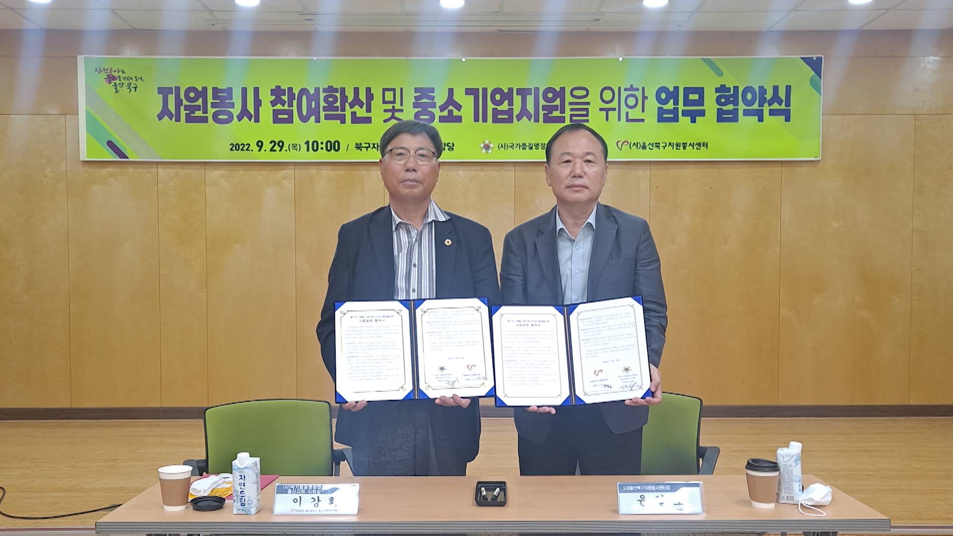 울산북구자원봉사센터와 국가품질명장협회 울산지회가 자원봉사참여 확산과 중소기업 지원을 위한 업무협약을 맺었습니다.