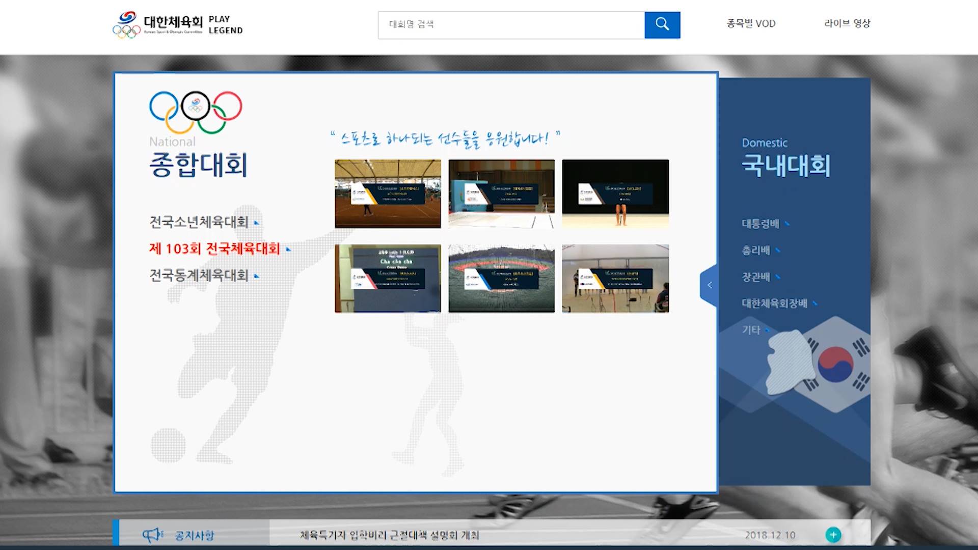 대한체육회는 전국체전 19세 이하부 16강 이상 경기는 체육회 경기 동영상 플랫폼인 '플레이레전드' 사이트에서 확인할 수 있다고 설명했습니다.