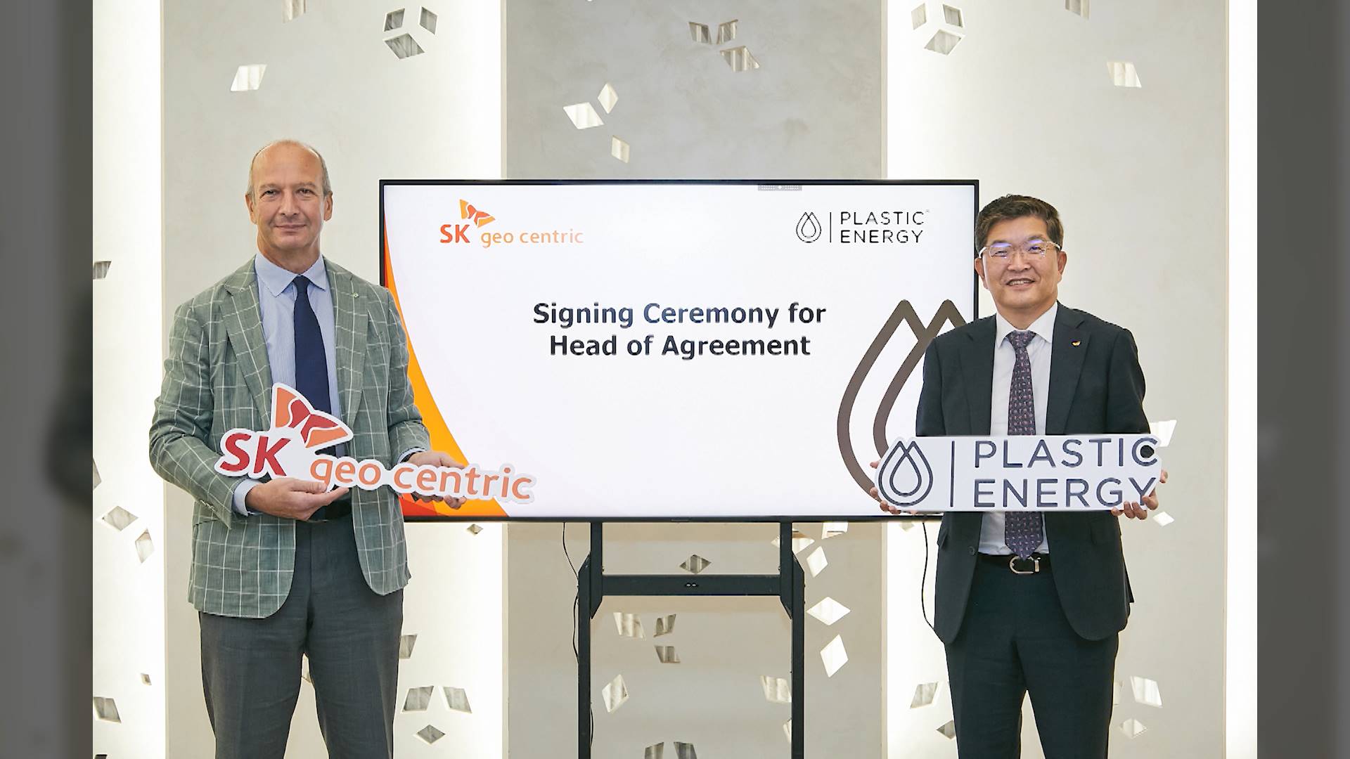 SK지오센트릭은 오늘(8/16) 영국 플라스틱 에너지와 울산 리사이클 클러스터로 조성중인 부곡 용연지구 내 아시아 최대 규모의 열분해 공장을 설립하기 위한 합의서를 체결했습니다.