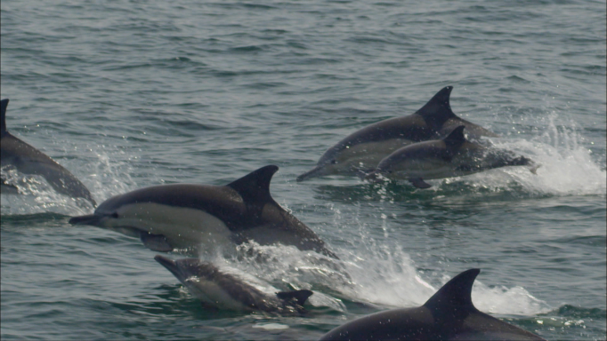 2017년쯤 울산앞바다에서 촬영된 참돌고래떼, 어미 바로 옆에 새끼가 함께 힘차게 헤엄치고 있다