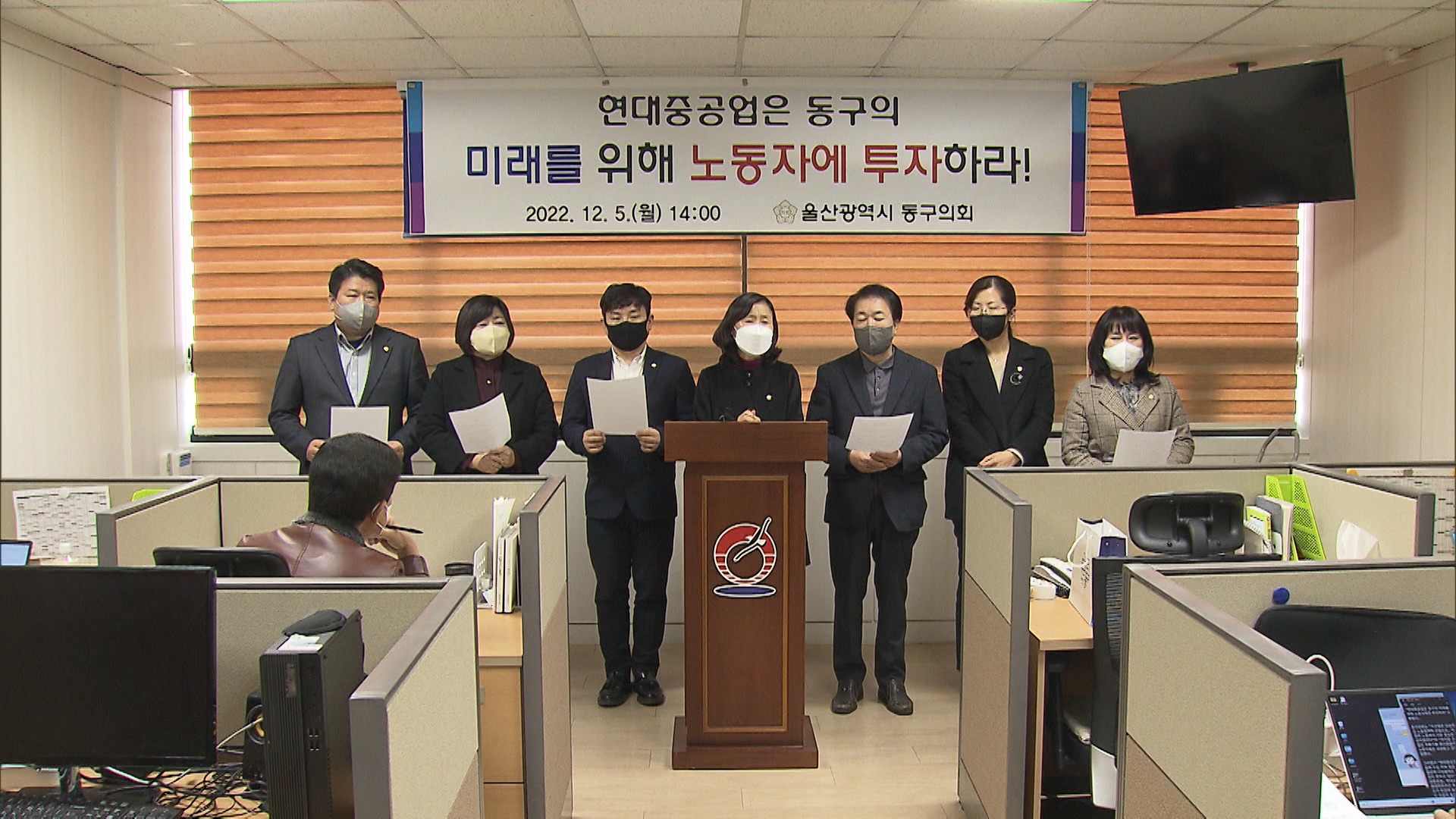 동구의회는 이번 임단협 지연은 노동자들의 요구를 만족시키지 못한 현대중공업의 책임이 가장 크다고 주장했습니다.