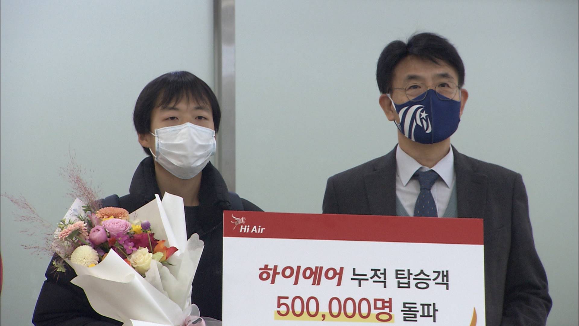 하이에어는 오늘(12/12) 울산공항에서 기념 행사를 열고 50만번째 승객에게 꽃다발을 증정했습니다.