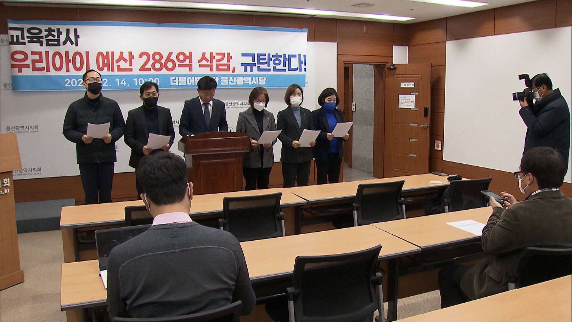 민주당 울산시당이 오늘(12/14) 내년도 시교육청 예산 286억여 원을 삭감한 울산시의회는 다수당 갑질을 중단하라고 주장했습니다.