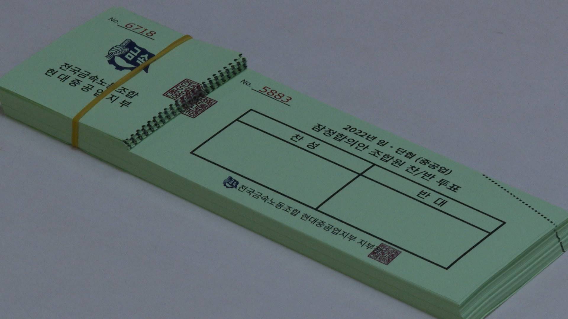 현대중공업 노조는 오늘(12/15) 전체 조합원 6천660명 가운데 6천179명이 참여해 3천551표의 찬성표를 던져 찬성률 57.4%로 가결됐다고 밝혔습니다.