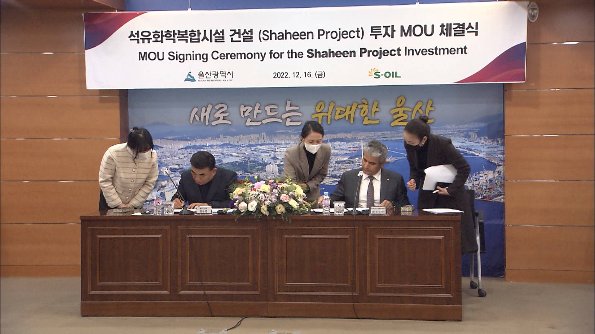 울산시가 오늘(12/16) 에쓰오일과 역대 최대 규모인 9조원대 석유화학복합시설 투자양해각서를 체결했습니다.