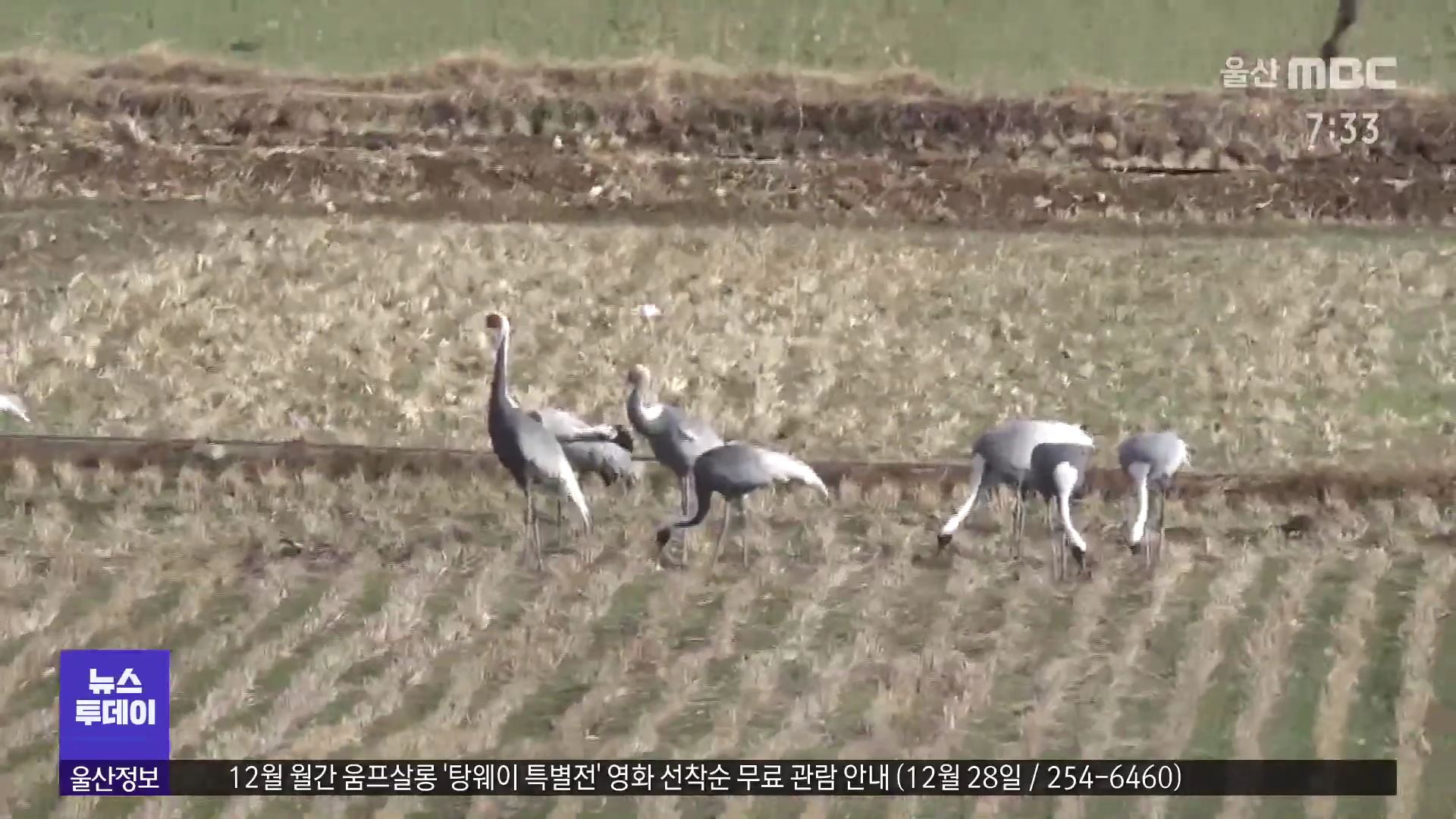 '흑두루미' 주요 서식지인 일본 아즈미와 전남 순천만에서 최근 잇따라 AI가 발생해 먹이주기 행사가 대폭 축소되면서 먹이를 찾아 날아왔을 것으로 추정됩니다.