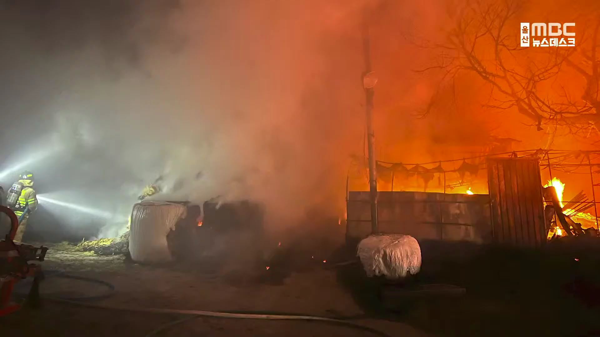 오전 5시 3분쯤 울주군 삼남읍의 한 축사에서 불이 나소방대에 의해 2시간여만에 꺼졌지만, 축사와 축사 안에 있던 소 4마리가 죽어 소방서 추산 8백만 원의 재산피해가 발생했습니다.