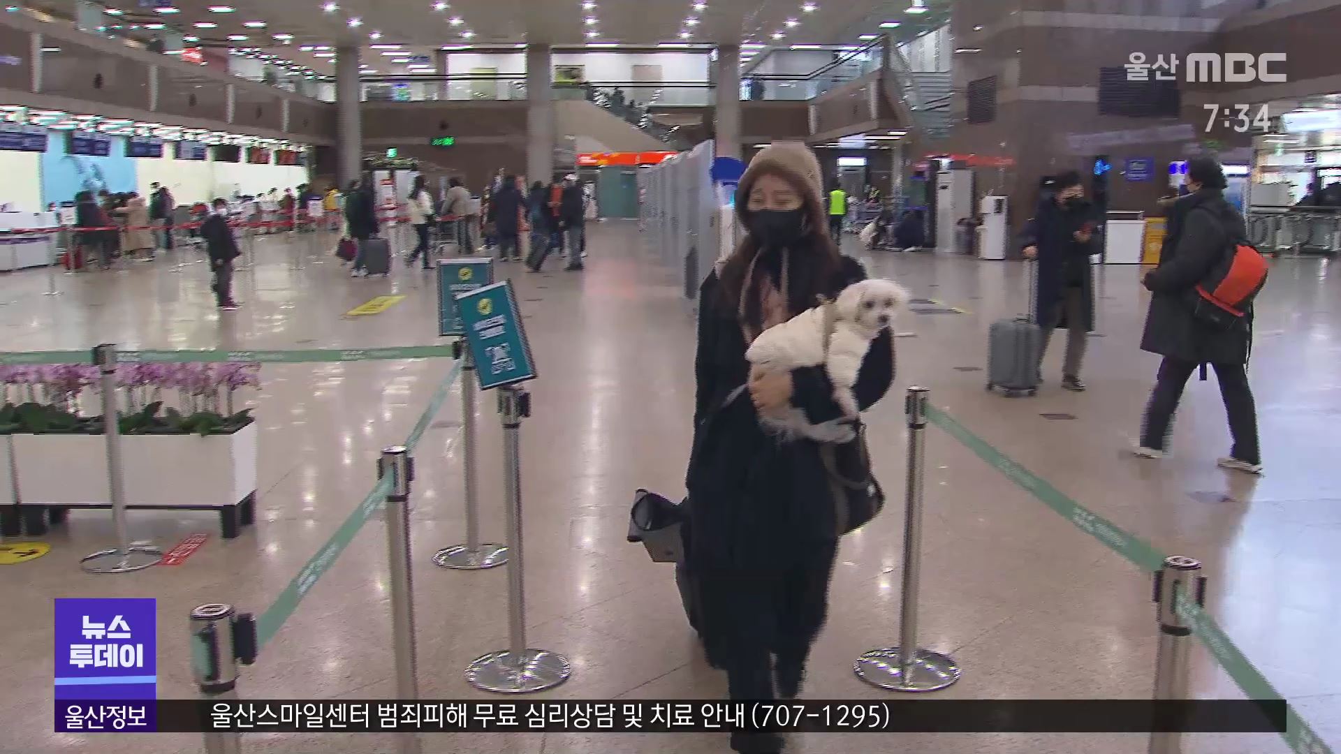 가족 단위거나 친구 사이인 여행객들 사이에, 반려동물과 함께 여행에 나선 승객들이 눈에 띕니다.