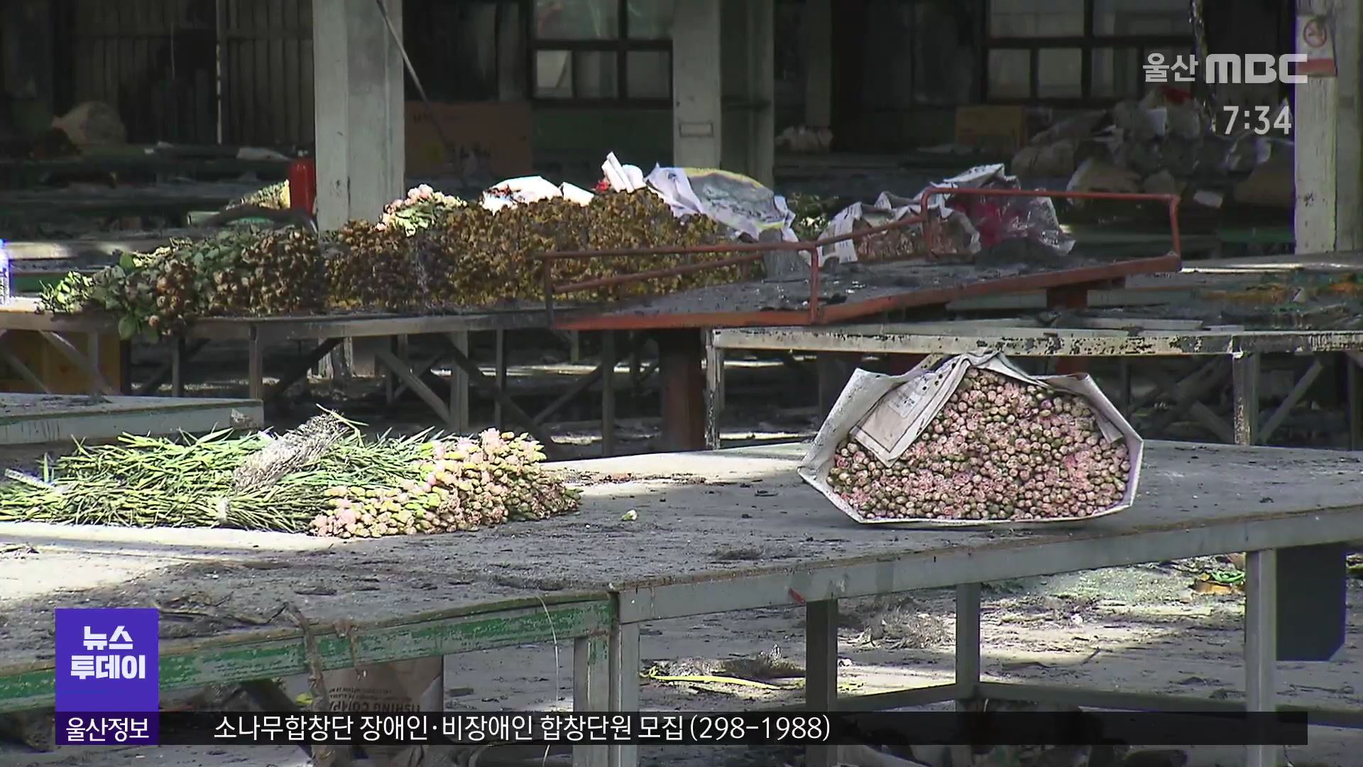 며칠 전 대형 화재로 부산경남 최대 화훼 공판장이 잿더미가 되면서, 부산에서는 꽃 경매가 1년 넘게 차질이 불가피하게 됐습니다.