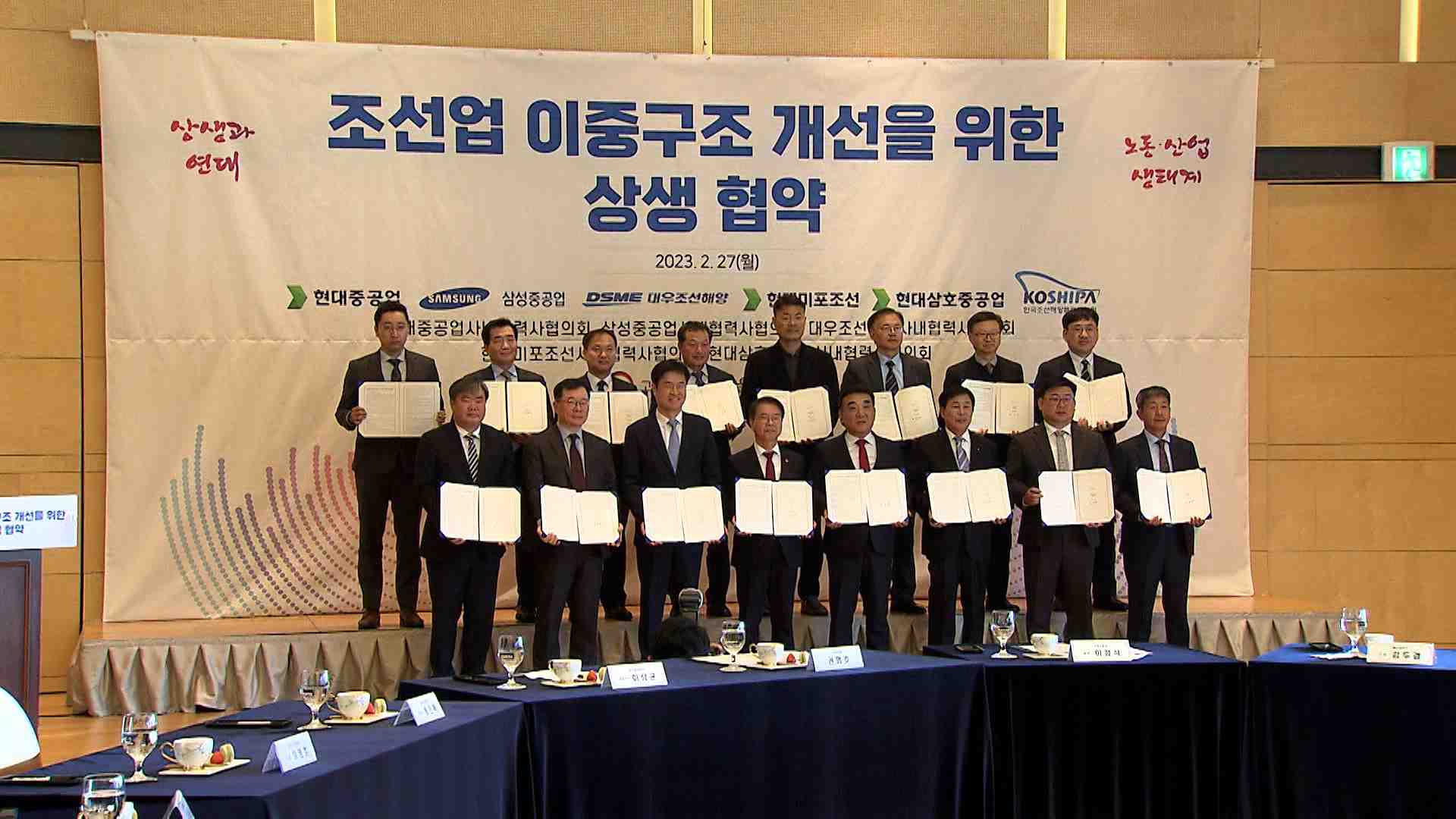 울산시와 고용노동부, 조선업계는 오늘(2/27) 현대중공업에서 상생 협약을 맺고 노동시장 이중구조 개선에 협력하기로 했습니다.