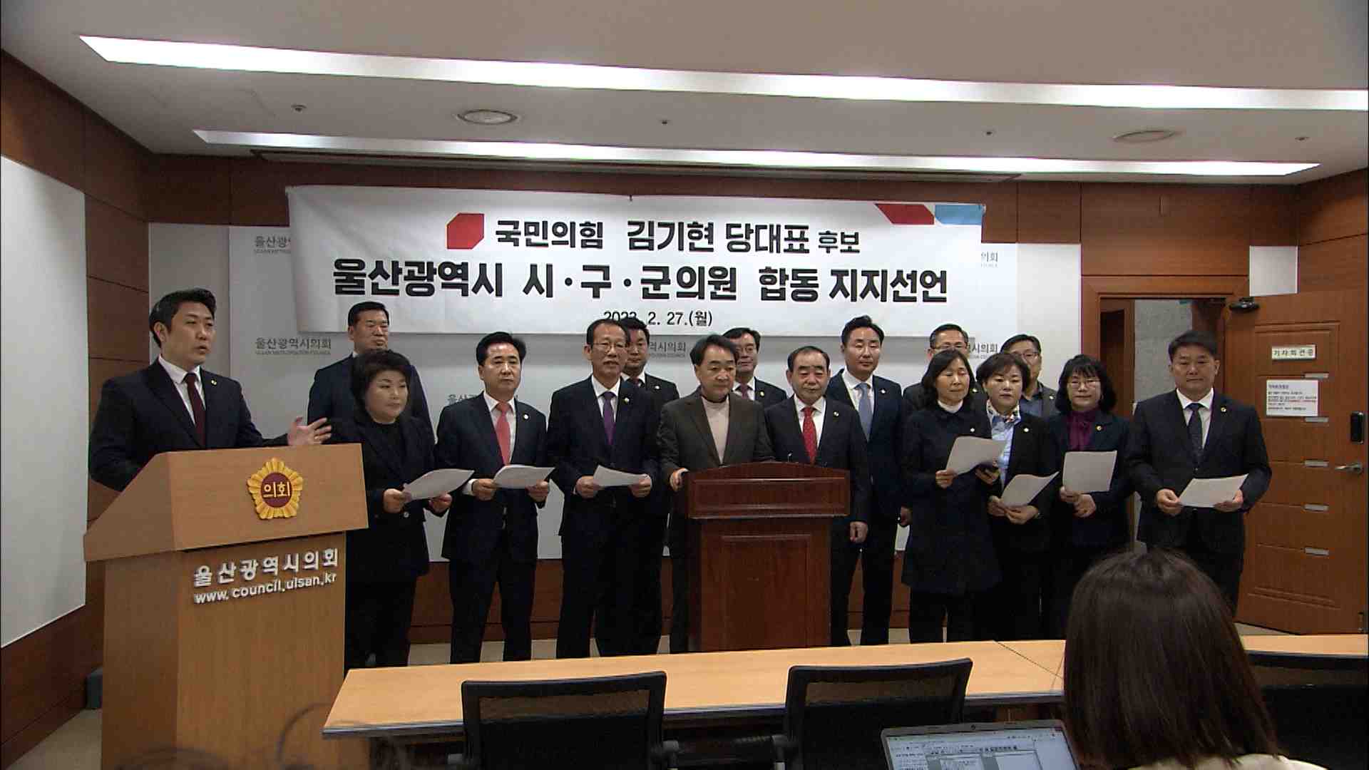 국민의힘 울산지역 광역의원들과 기초의원들이 이번 국민의힘 당대표 선거에서 김기현 의원을 지지한다고 선언했습니다.