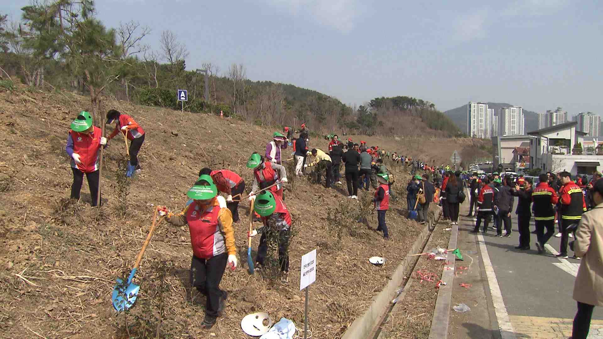 나무심기 행사에 참여한 시민 200여명은 완충녹지 1만제곱미터에 동백나무와 이팝나무, 왕벚나무 등 2천 그루를 심었습니다.
