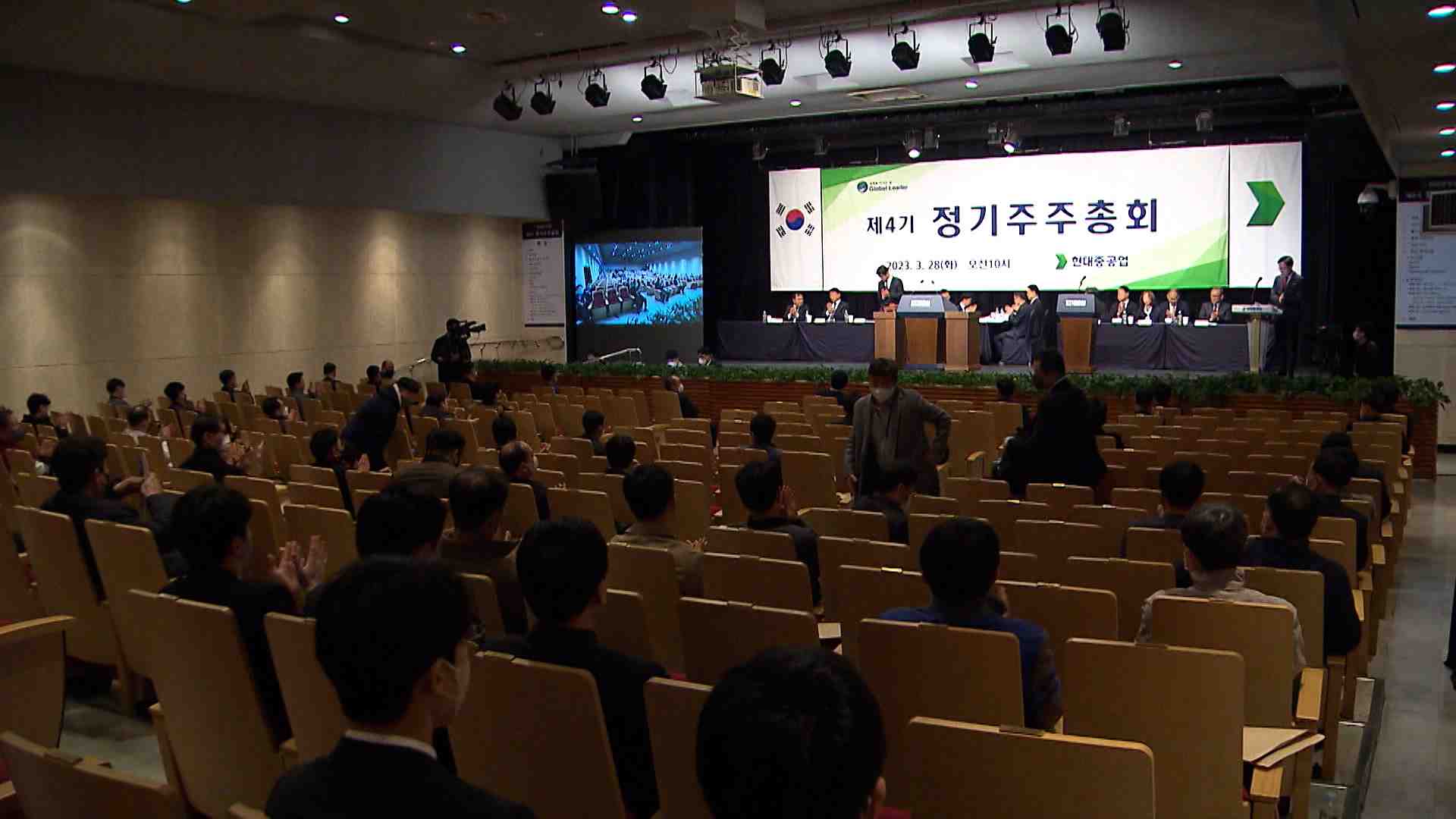현대중공업이 오늘(3/28) 동구 한마음회관에서 정기 주주총회를 열고 사명을 HD현대중공업으로 변경했습니다.