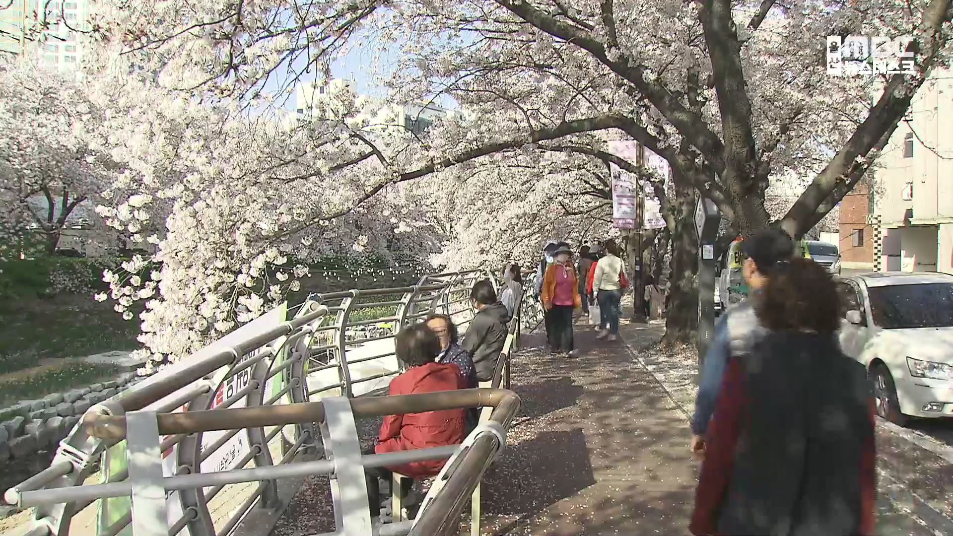축제가 열리는 무거천 일대에는 양 옆으로 활짝 핀 벚꽃이 만개해 꽃 나들이를 나온 시민들로 가득했습니다.