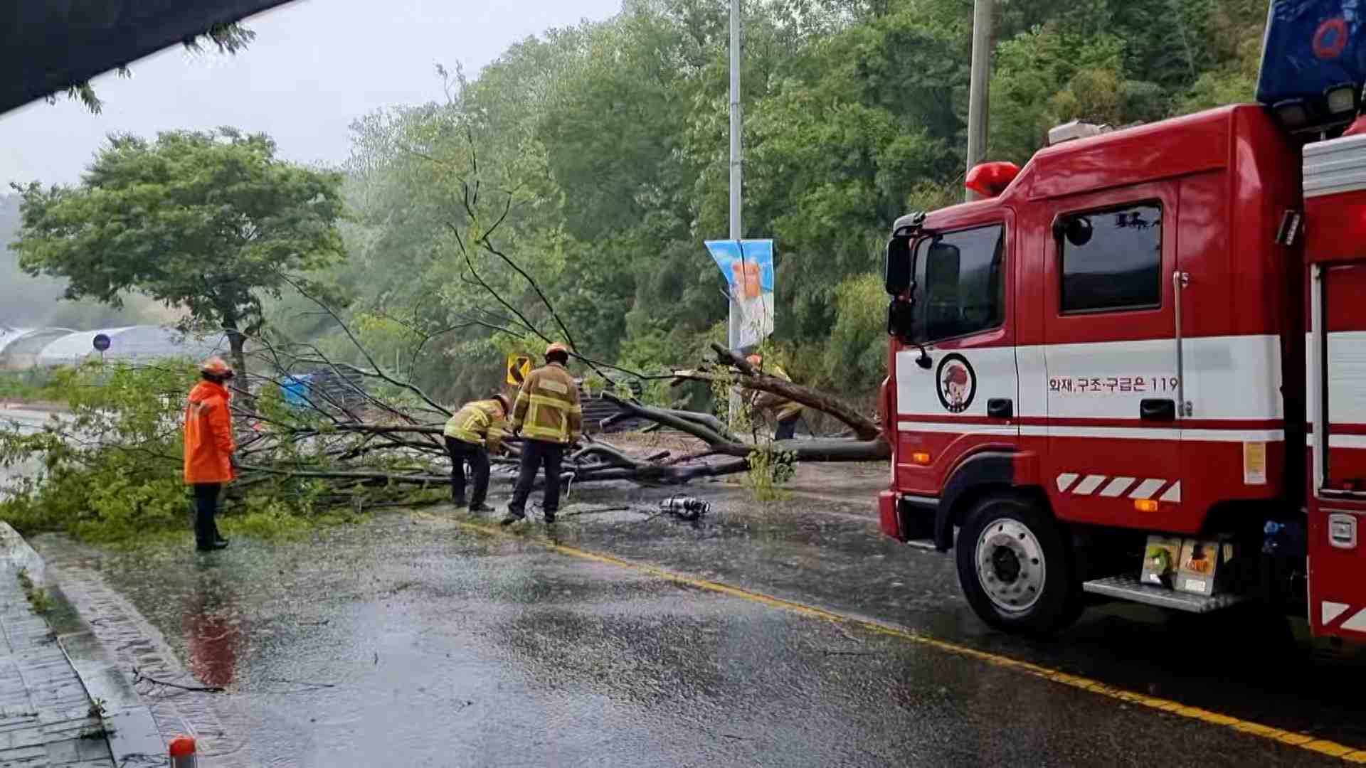 오늘(5/5) 오후 12시 10분쯤 울산 울주군 온산읍의 한 도로에서 가로수 2그루가 강한 바람에 도로 방향으로 쓰러져 가로수를 치우는 2시간 동안 차량 통행에 불편을 겪었습니다.