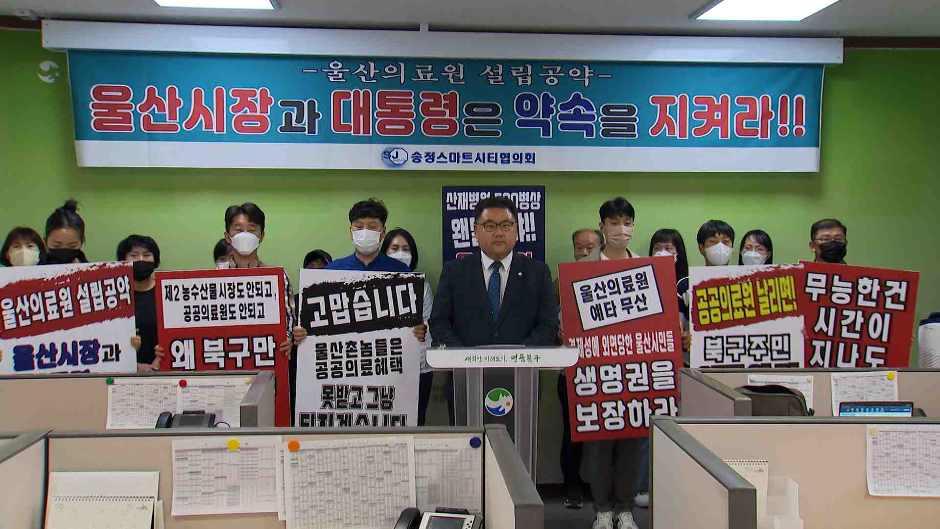 울산 송정 스마트협의회는 오늘(5/15) 북구청에서 기자회견을 열고 울산의료원 설립이 경제성을 이유로 무산된 것은 경제성 점수를 상쇄할 만한 ‘정책성’과 ‘지역 균형 발전’의 측면에서 울산시의 준비가 부족했다는 반증이라고 주장했습니다.
