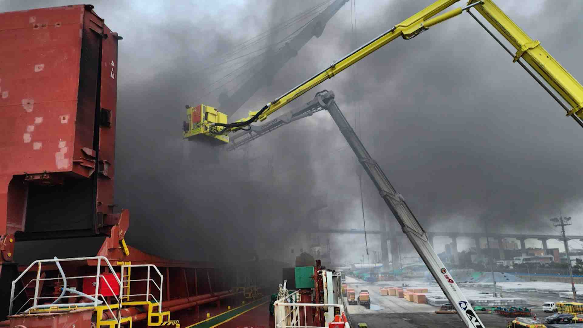 당시 선박에 있던 작업자 등 5명은 곧바로 대피해 인명피해는 없었지만 화물선에 실려있던 5천 700톤 규모의 플라스틱 제조 원료 등이 타며 화재 진화에 어려움을 겪으며 진화에 5시간 30분이 걸렸습니다.