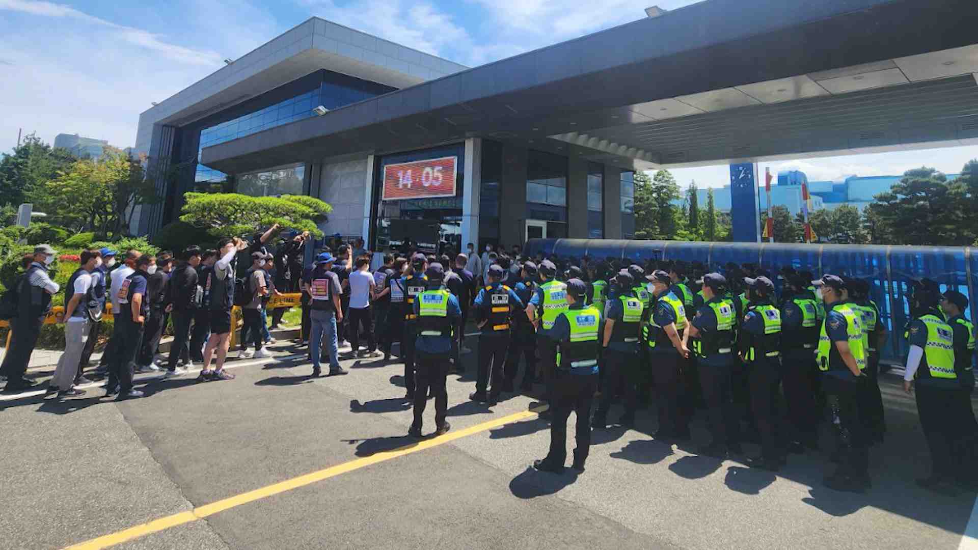 이에 대해 경찰은 조합원 40여명이 신고 없이 방송차 등을 활용해 인도를 점거한 것은 미신고 집회라며, 회사 진입을 시도하는 과정에서 물리적 충돌이 일어나 분리조치를 한 것이라고 설명했습니다.