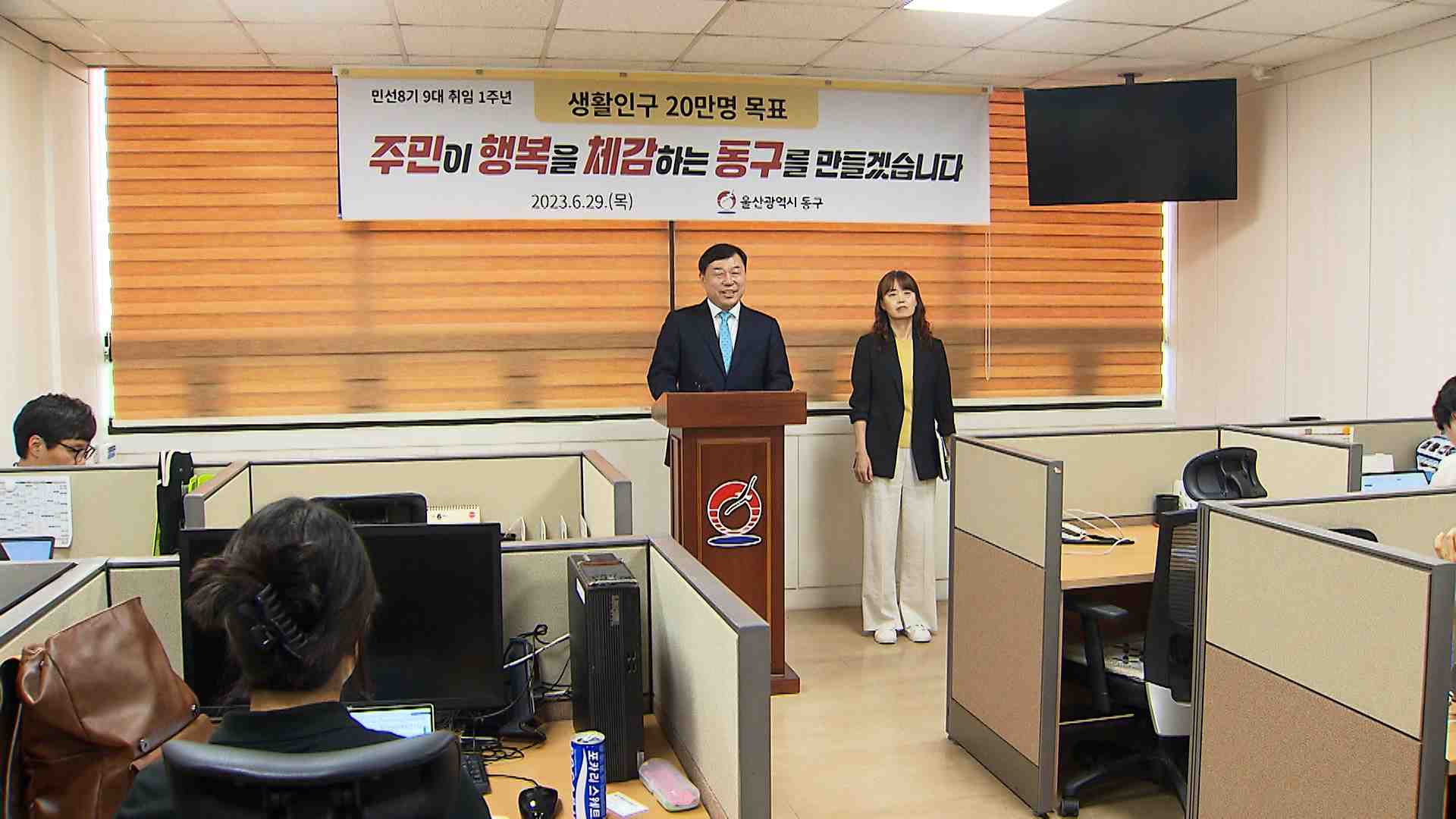 김 구청장은 오늘(6/29) 동구청 프레스센터에서 열린 취임 1주년 기자회견에서 동구의 정주여건을 개선해 한 달 살기와 같은 체류인구를 늘려가겠다고 말했습니다.