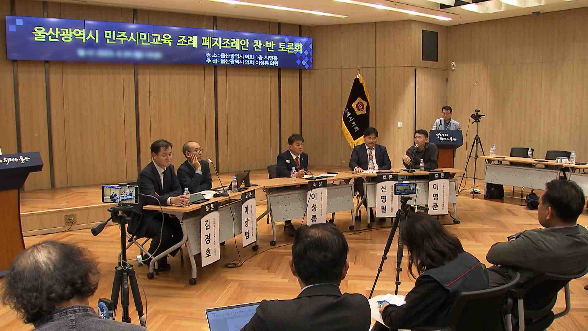 울산시의회는 조례 폐지를 반대하는 측에서 단순 요식행위에 그치는 토론회에 참석할 필요를 느끼지 못하겠다며 불참 의사를 밝혀와 행사를 취소했다고 밝혔습니다.
