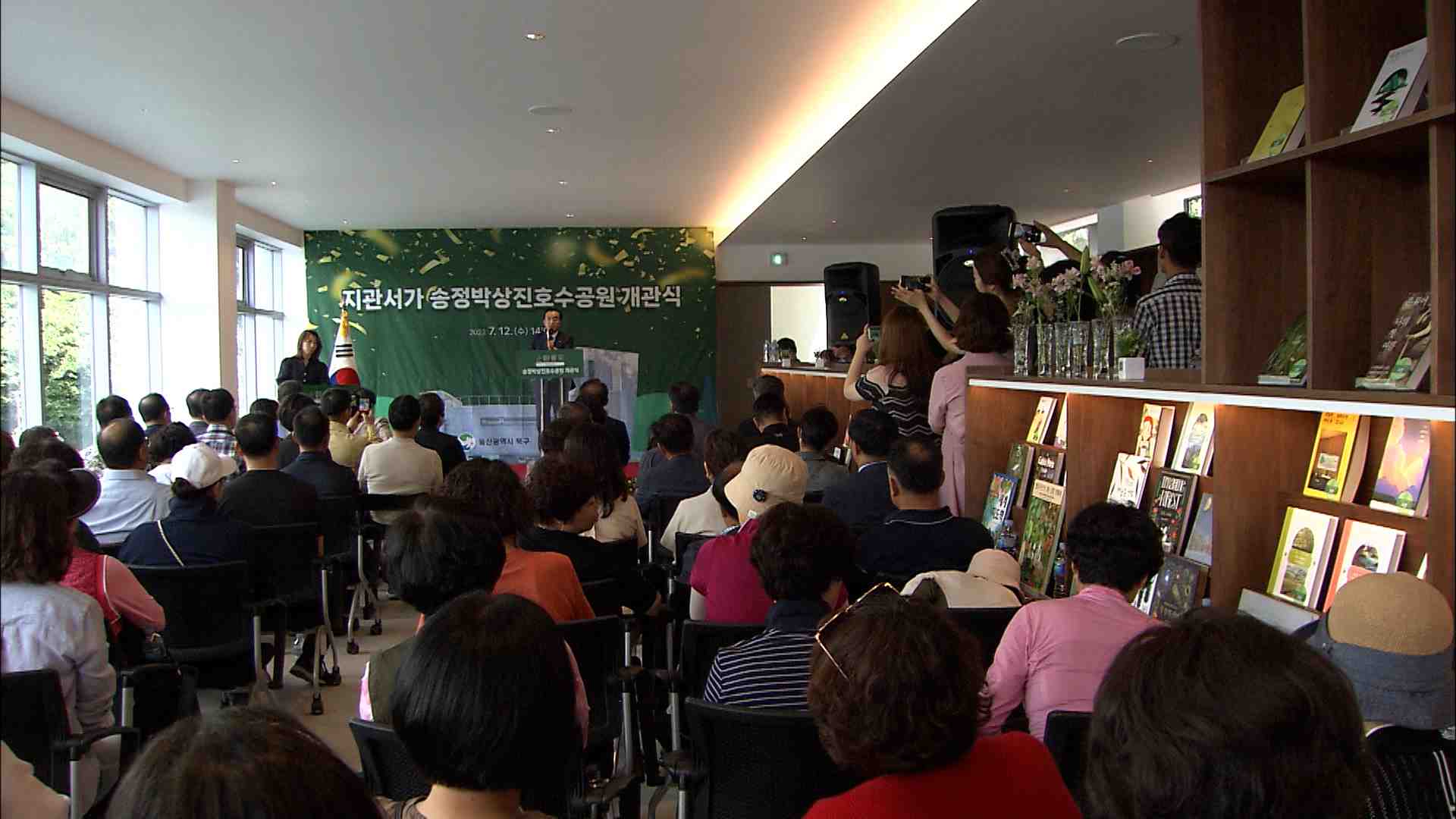 기업의 사회 공헌사업으로 추진되고 있는 복합문화공간 '지관서가' 6호점이 오늘(7/12) 북구 송정박상진호수공원에 문을 열었습니다.