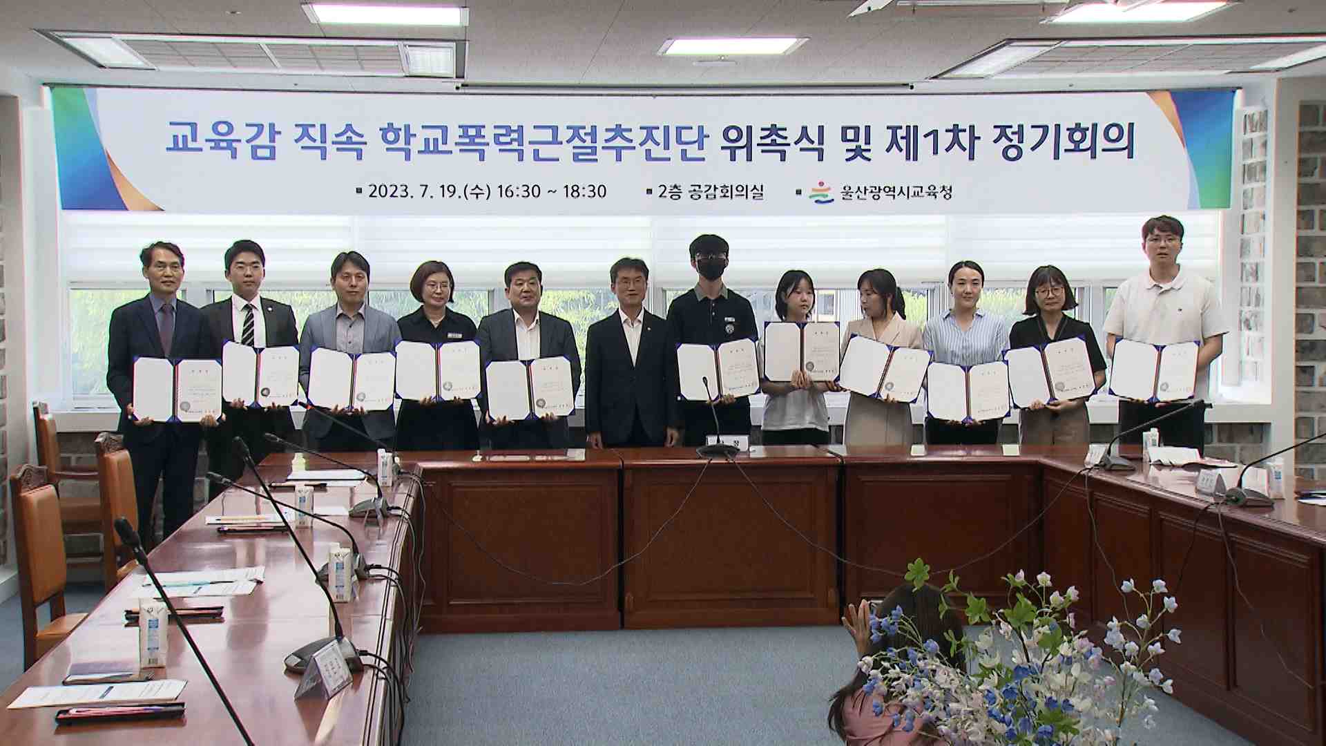 교육감 직속 학교폭력근절 추진단은 울산시교육청 민주시민교육과장과 울산경찰청 여성청소년계장, 변호사, 교사 등 13명으로 구성됐습니다.
