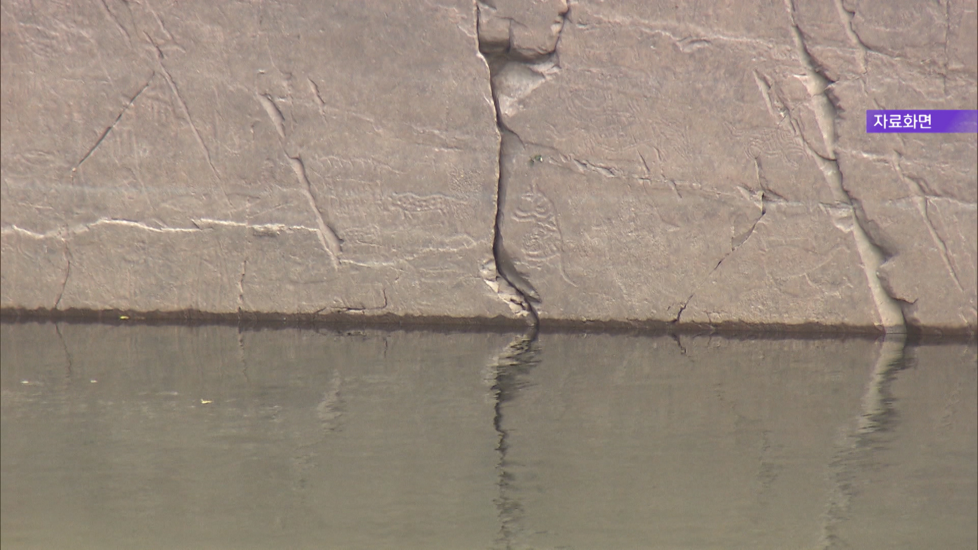 유네스코 세계문화 유산 등재 신청 대상인 국보 제285호 울산 반구대 암각화가 이번 장맛비에 또 물에 잠겼습니다.