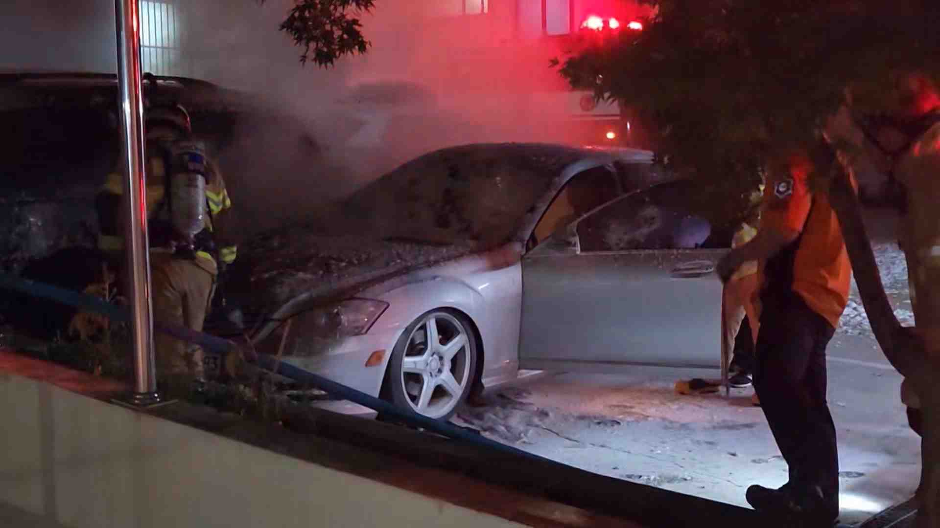 소방당국은 차량 두 대 모두 경찰 차량으로 확인됐다며, 전기적 원인으로 불이 시작된 것으로 보고 정확한 화재 원인을 조사하고 있습니다.